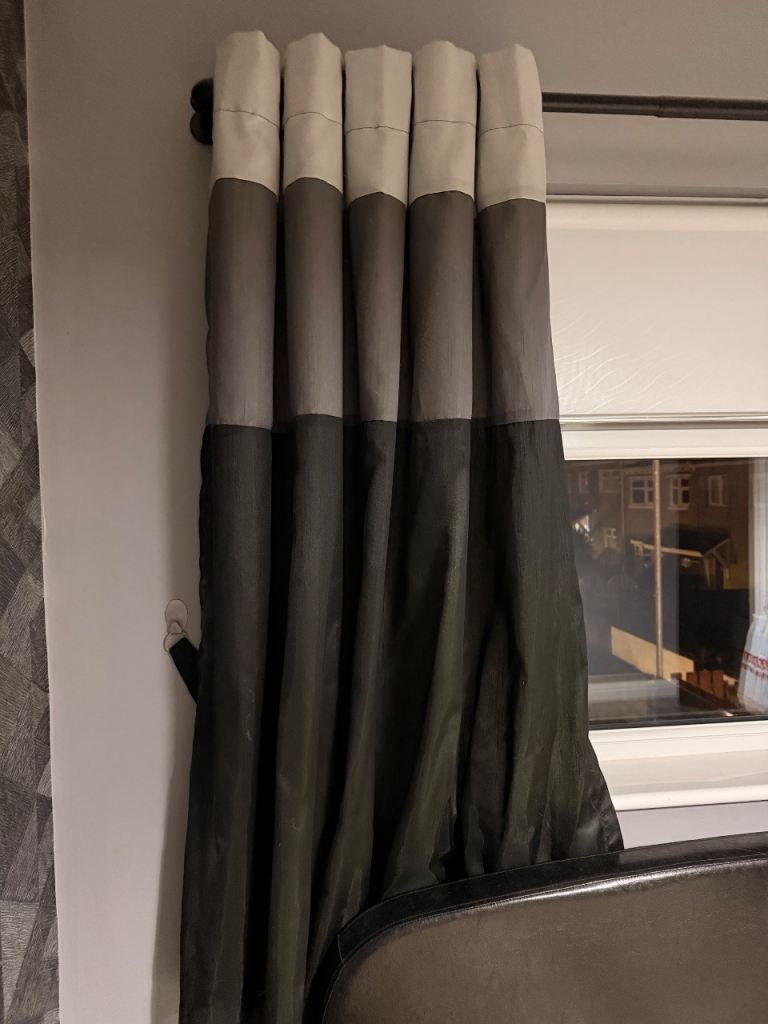 66x54 black grey & silver lined eyelet curtains