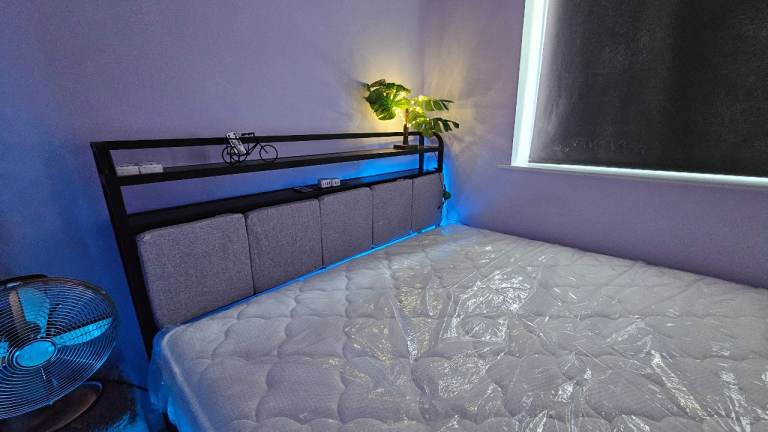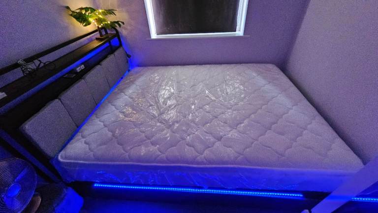 Brand NewCostway king size bed frame with RGB LED lights and charging station with king size matress