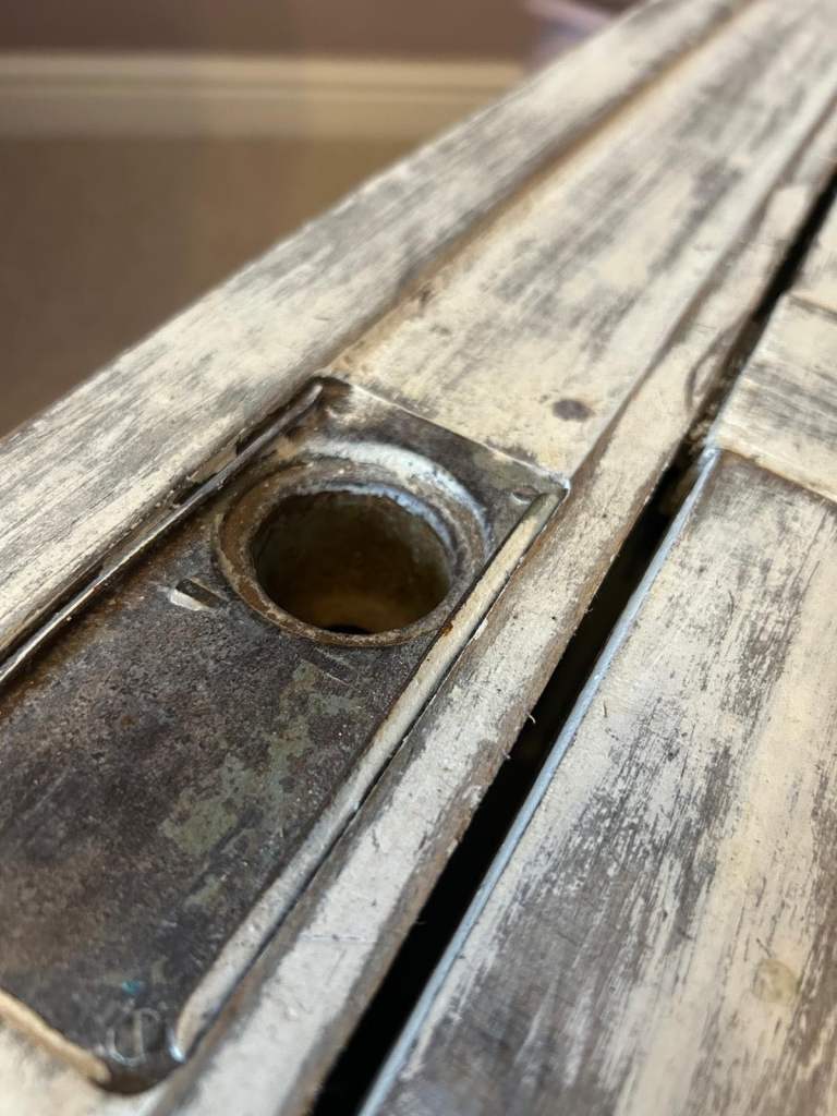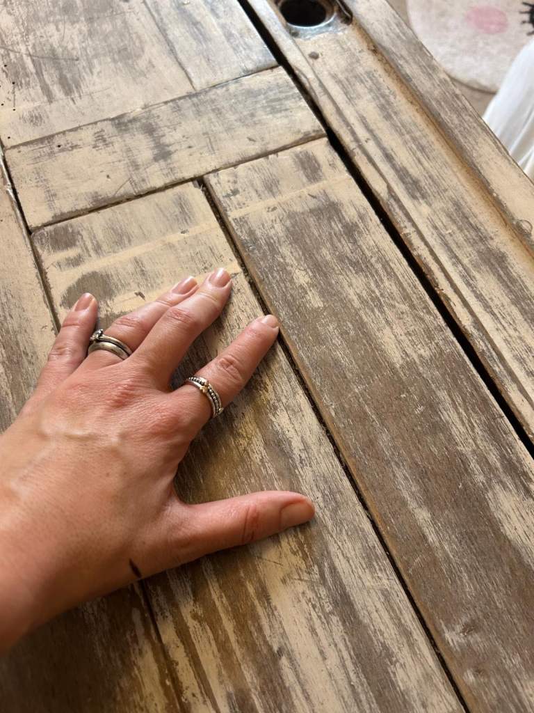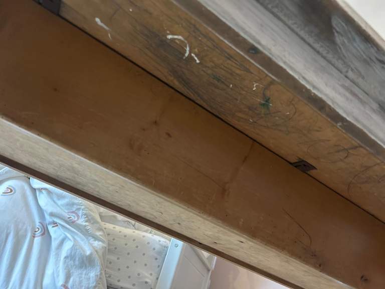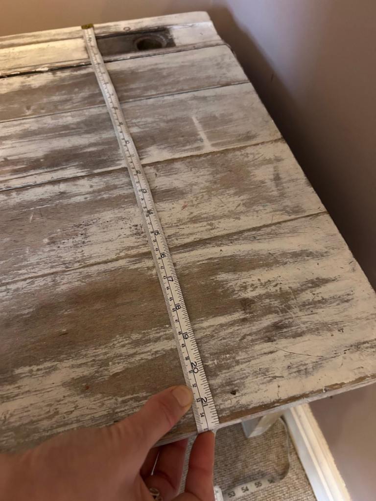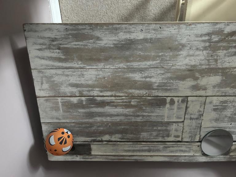 It’s been whitewashed and there are lots of scuffs on it from use. For me, this just makes it all the more cute.