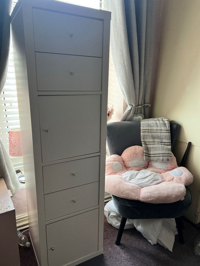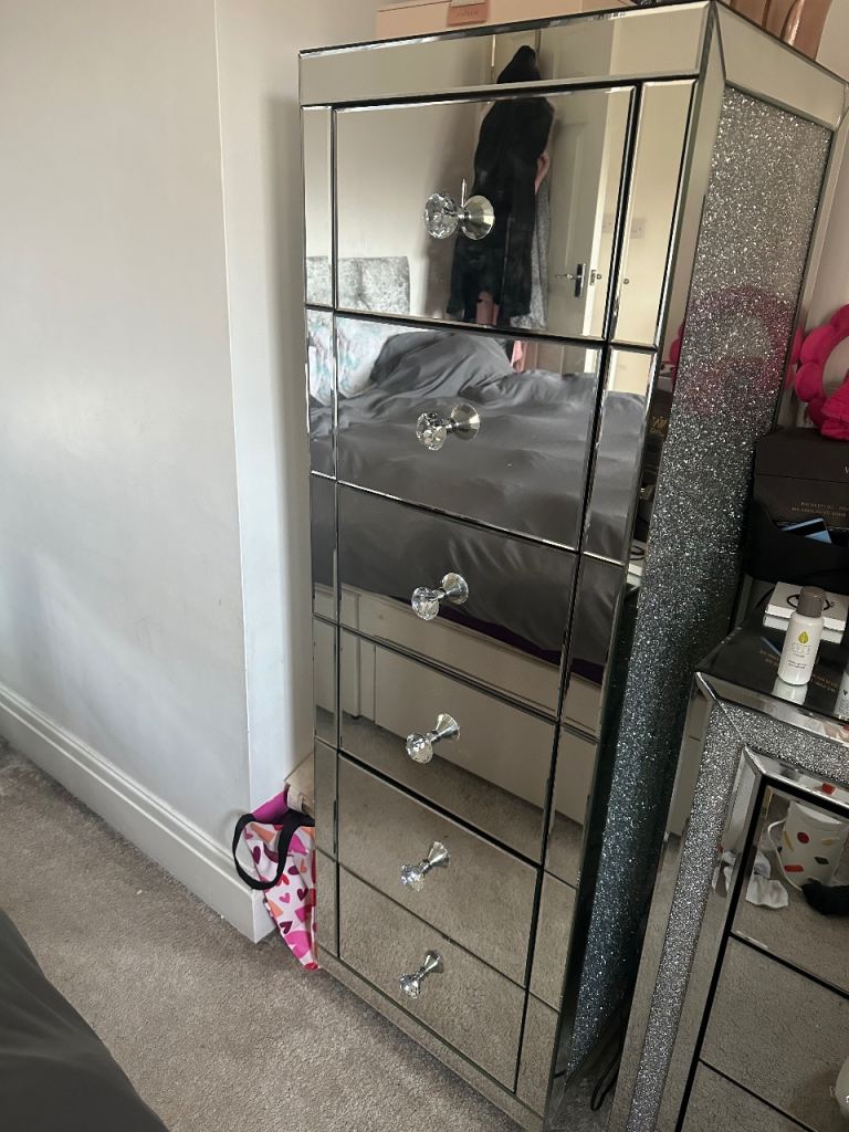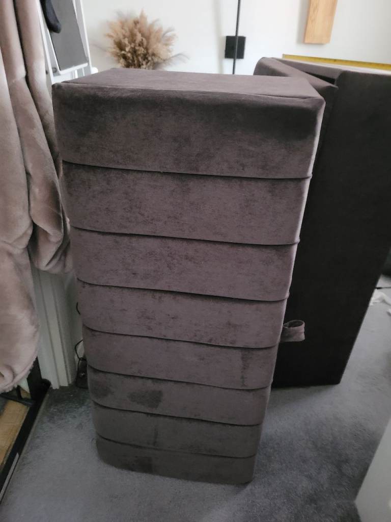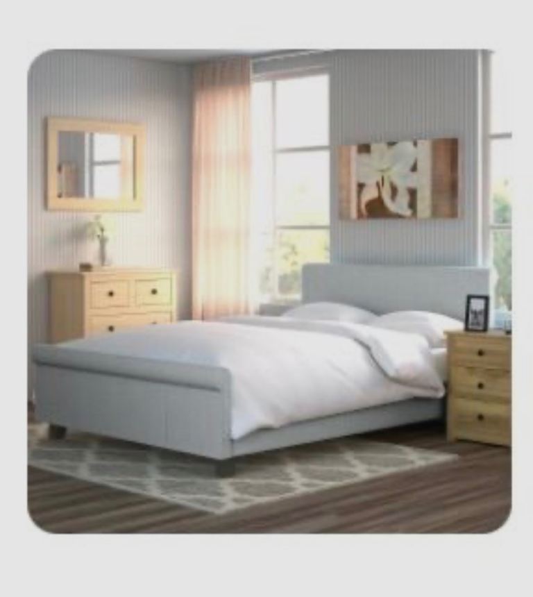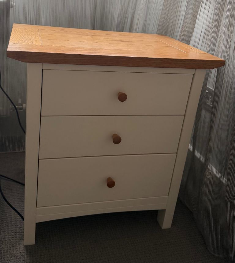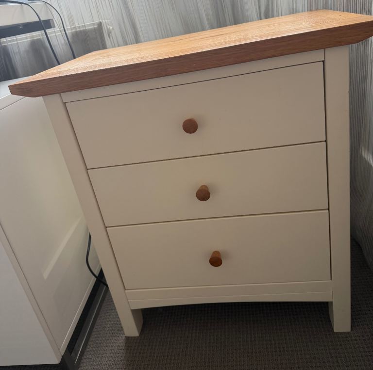 This double bed set includes a contemporary/modern design with a wooden frame, standing at 105 cm in headboard height and 70 cm in footboard height. The set comes with a comfortable, firm mattress and two bedside tables, each with three drawers for storage. Ideal for adult's bedroom, this 21st-century manufactured furniture is perfect for those looking for a stylish and functional place to rest and relax. Barely used. Has been in second, rarely used, guest bedroom. Pick up only from Barnes, London.