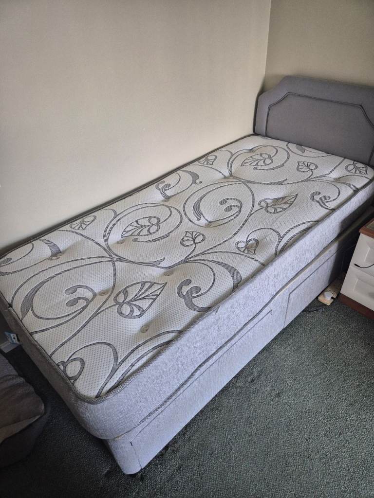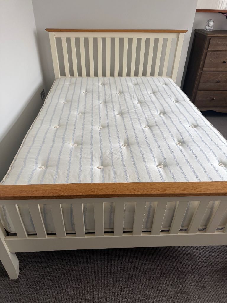 Posting for 7+ monthsDouble bed, mattress and two bedside tables - all excellent condition