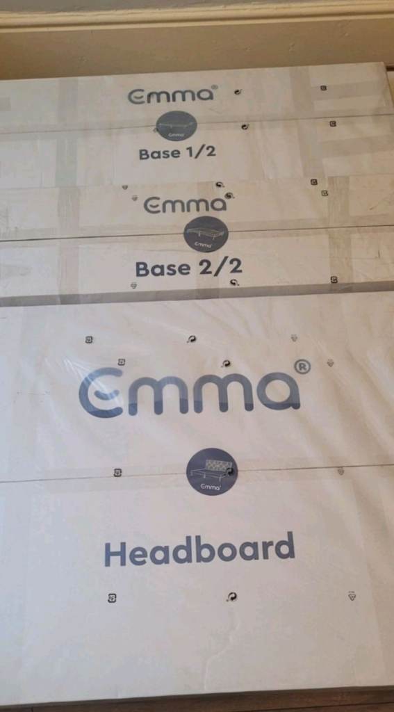 Brand new Emma Superking bed base and headboard with 4 underbed drawers. 5 boxes in total that can fit in a car. Ideal for getting up narrow staircases and in loft rooms. Easy to assemble. Can be collected or possible delivery for fuel if not to far