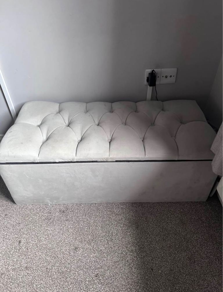 Posting for 5+ yearsGrey Upholstered Kingsize Bedframe & Matching Ottoman Box