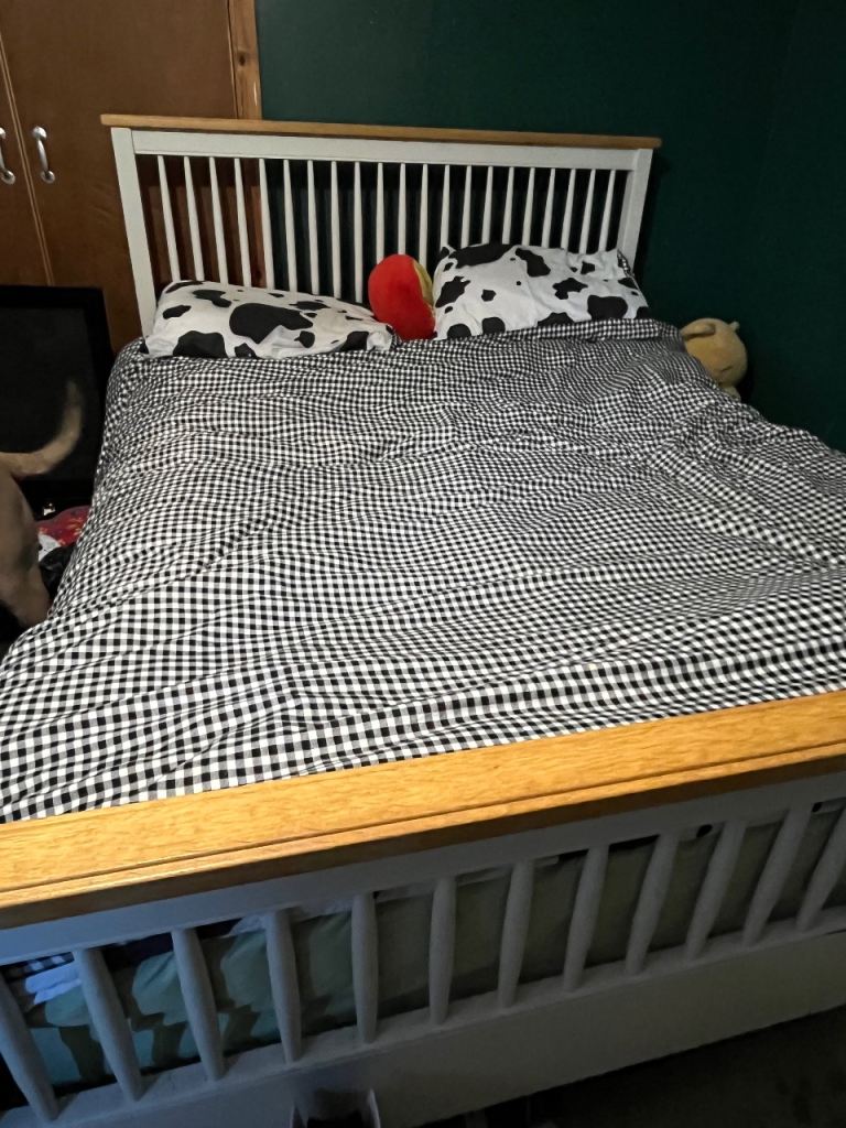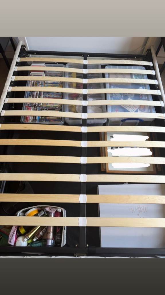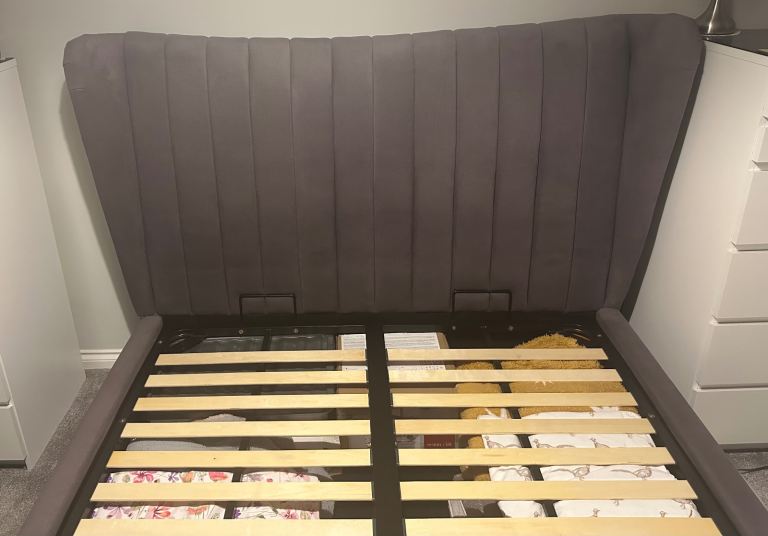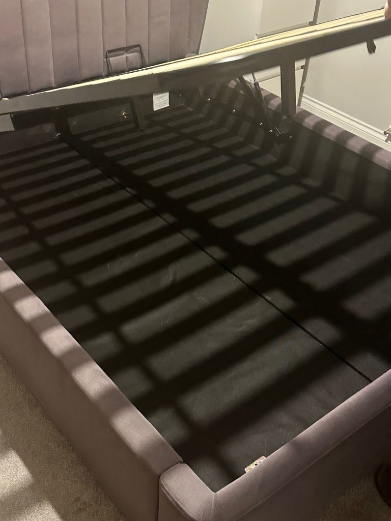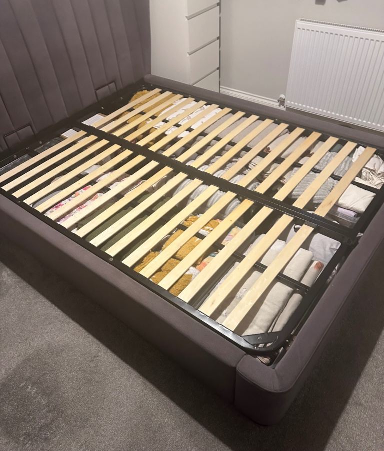 Ottoman storage gas lift bed in excellent condition (for king size mattress)