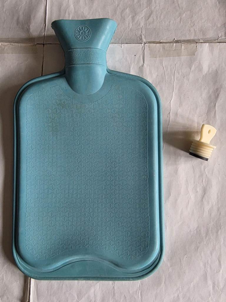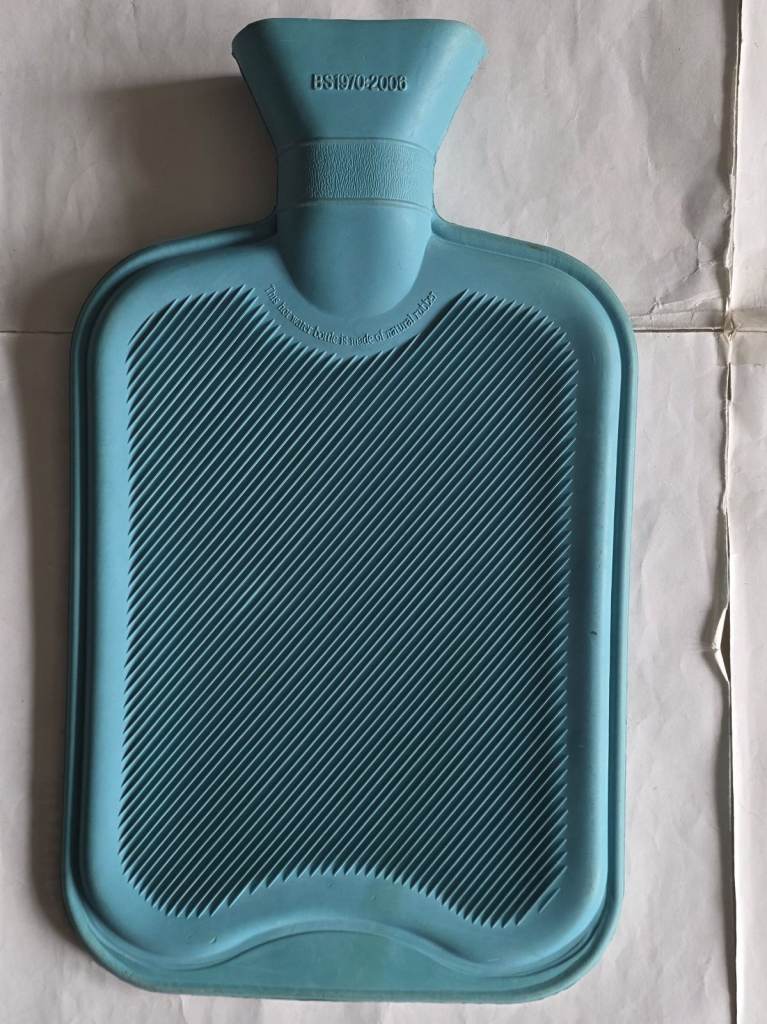 This is my light blue hot water bottle that can hold up to 1 litre and has a screw top