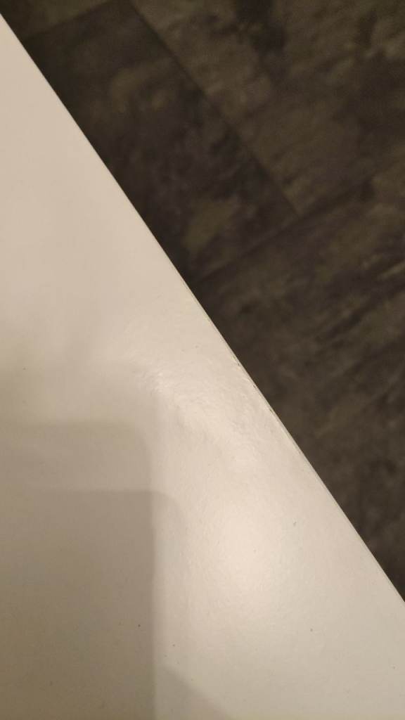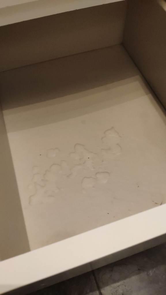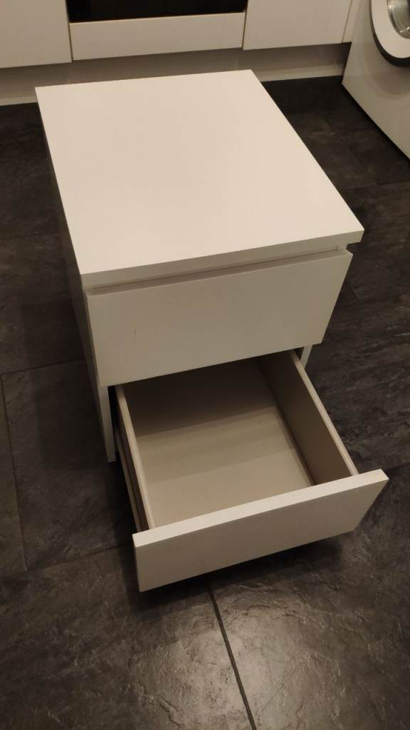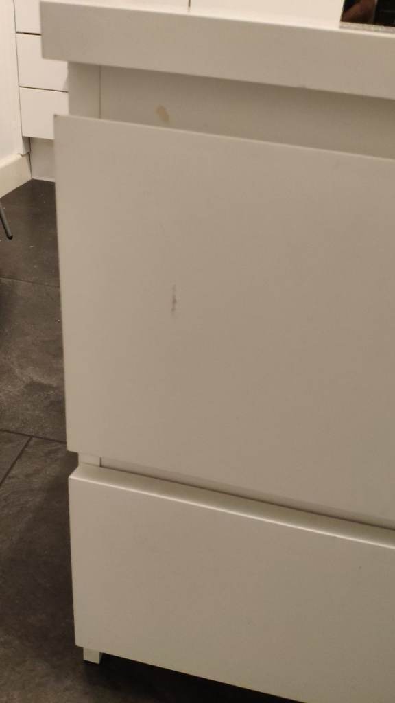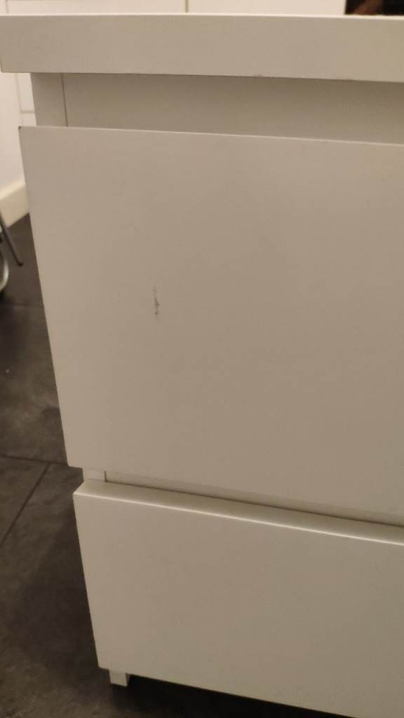 Generally good condition by small areas to note; slight water damage on top and a bit inside one drawer, and a bit of a dent on the front of one drawer. Otherwise very good.