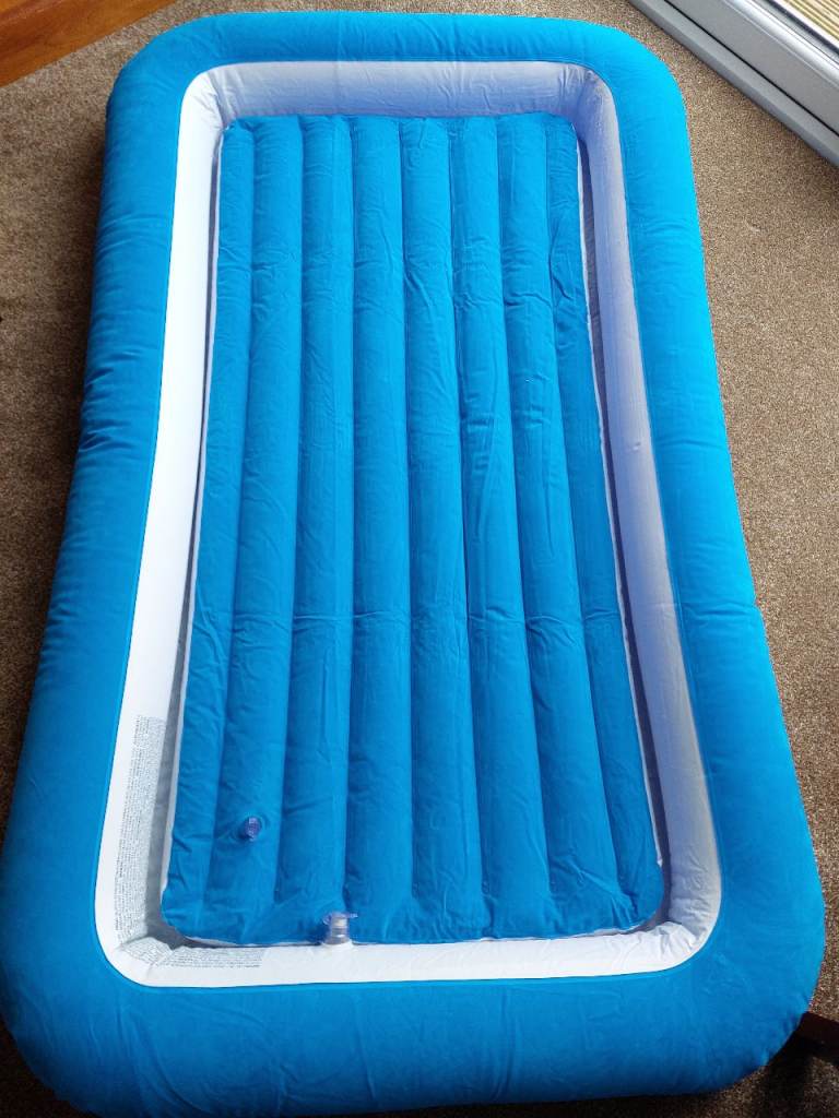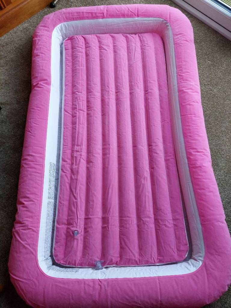Two unused single Kids Flocked Airbeds, suitable for 3-8 yr olds. Blue & Pink