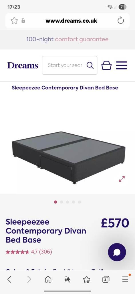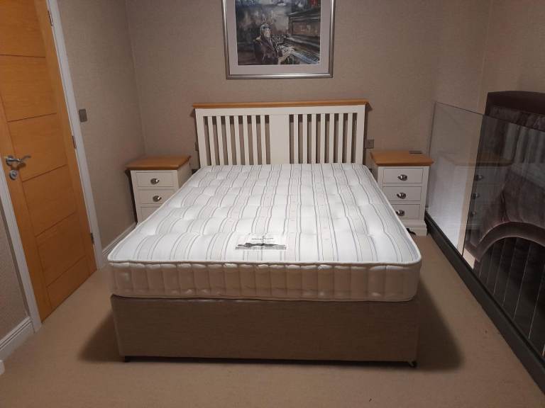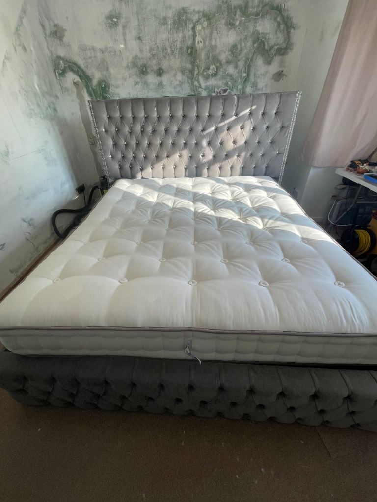 Grey flecked king size divan bed with 2 draws.