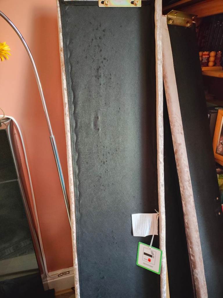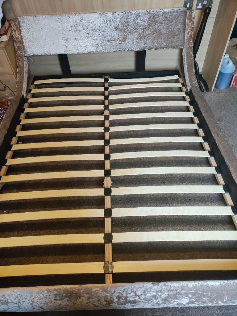 This king size bed frame is crushed velvet in the colour truffle. It's in great condition, apart from the back of the headboard where the cat has slightly plucked it. This can't be seen once assembled. It is a nice sleek modern bedframe, a great addition to any bedroom. Collection only.£50 ono