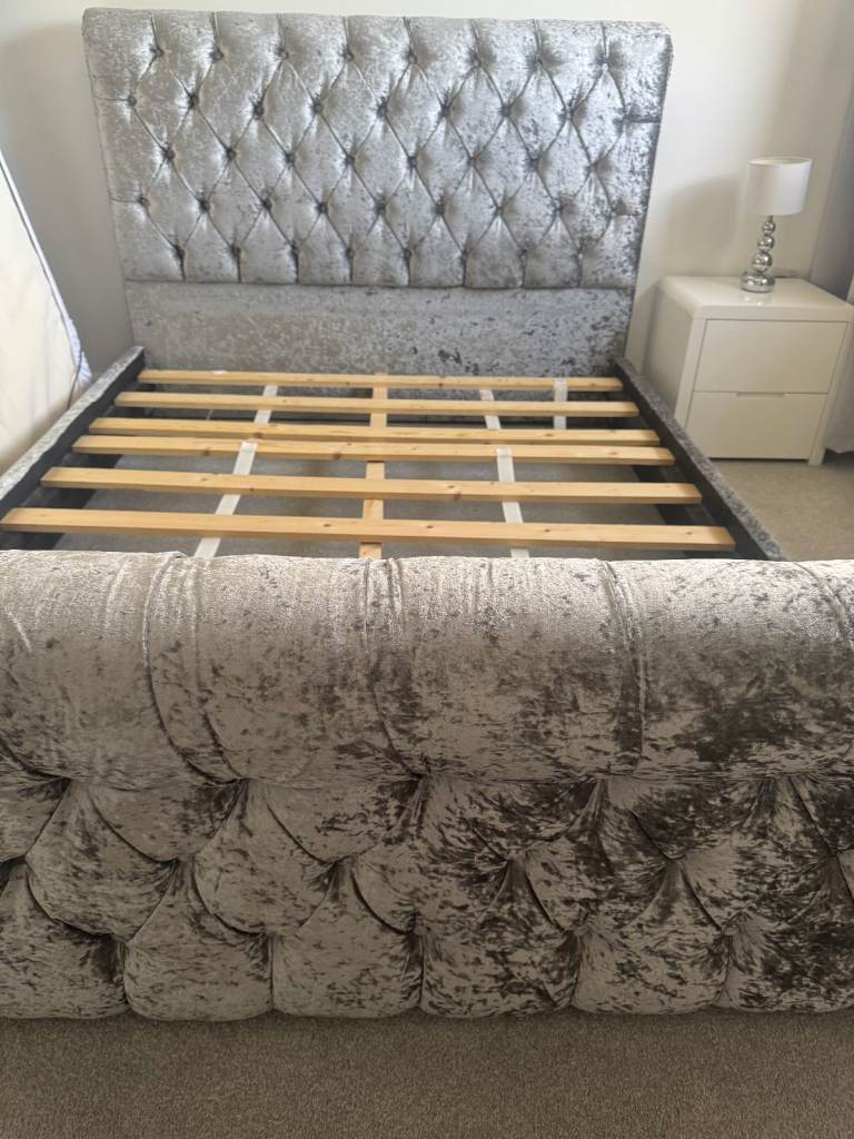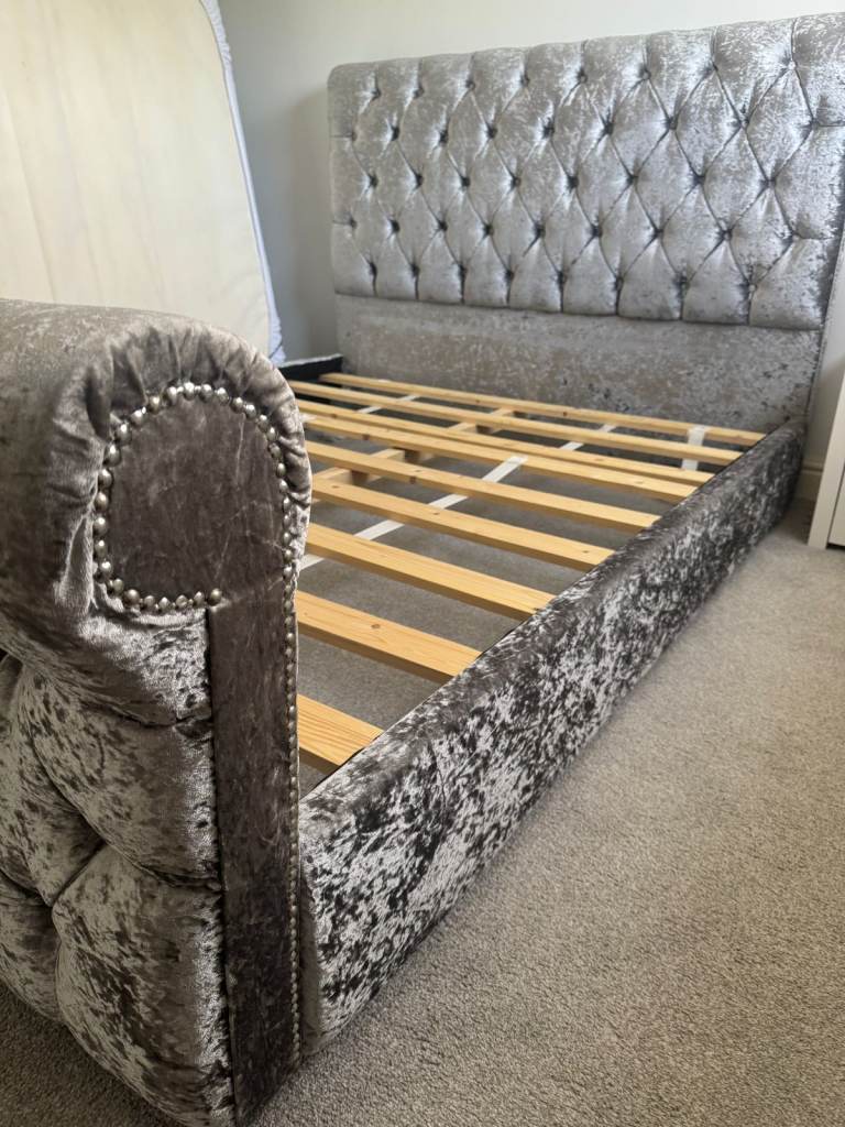 Posting for 11+ yearsKing Size Bed frame Grey Velvet