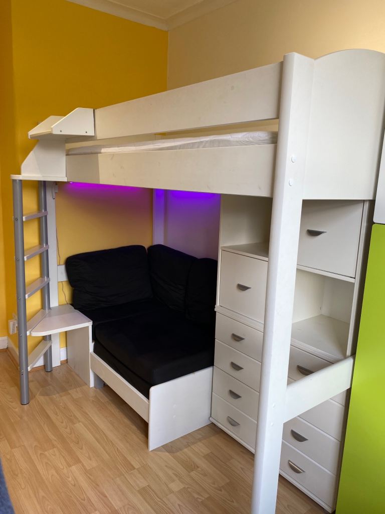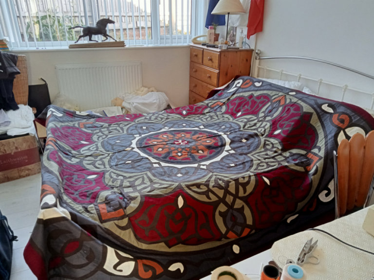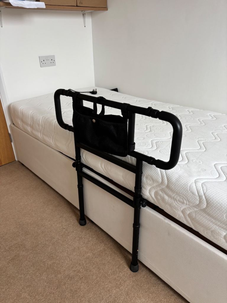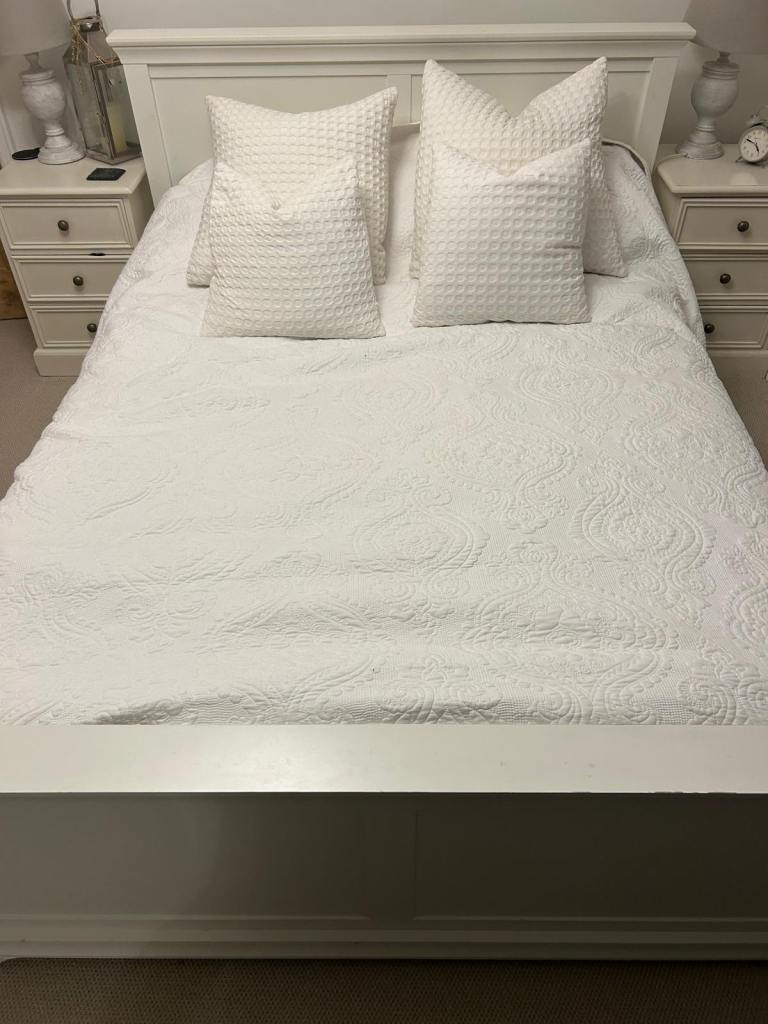 Kingsize bedframe , no mattress, had it made. Quite high in height when mattress on it