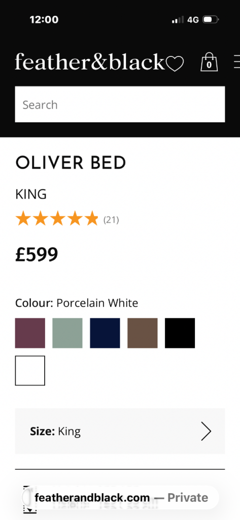 Posting for 12+ yearsKingsize Feather&Black Oliver Kingsize Bed in Grey