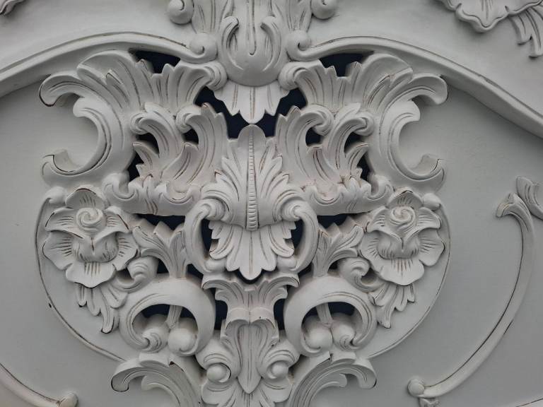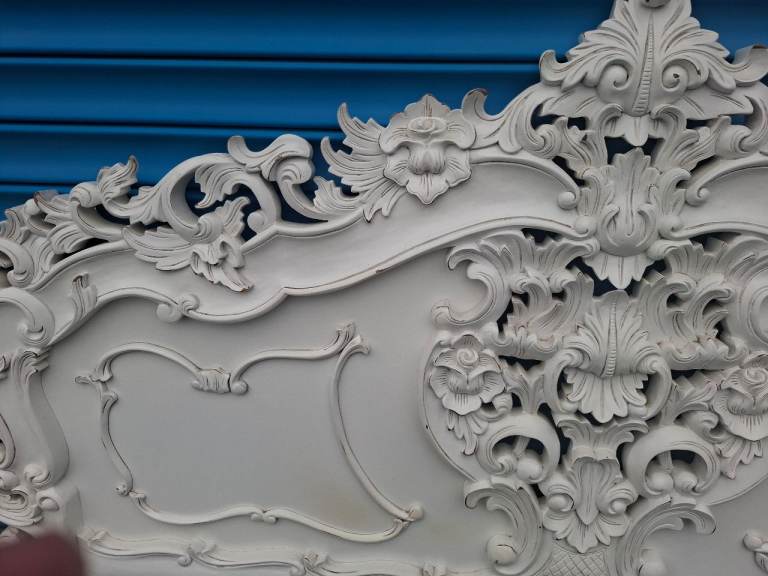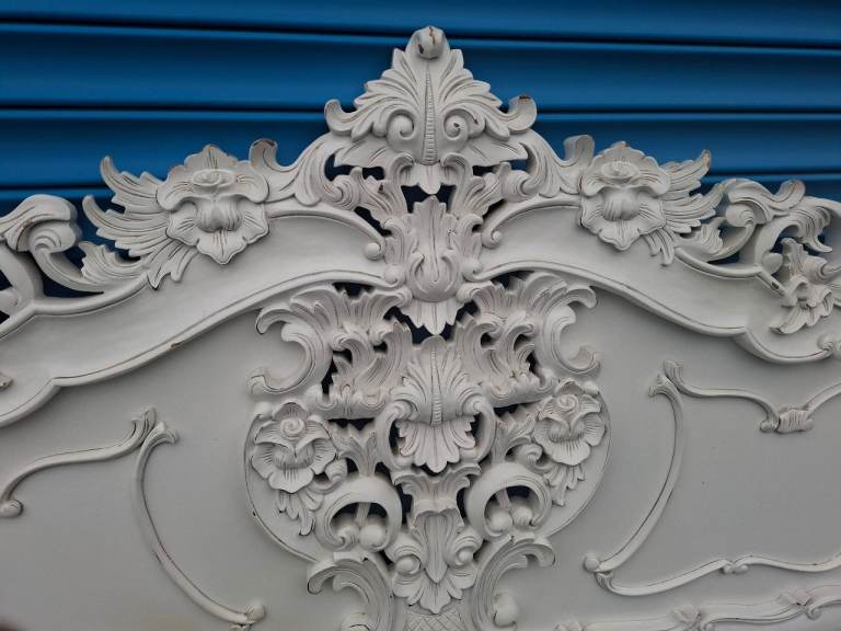 Headboard and both.sides have carved Rococo as does the bottom board ( some minor losses to the wood as in images .