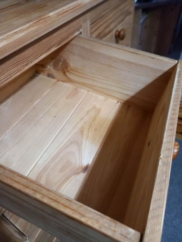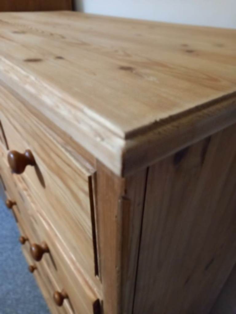 Posting for 8+ monthsPine chest of drawers,large,stripped,deep drawers.