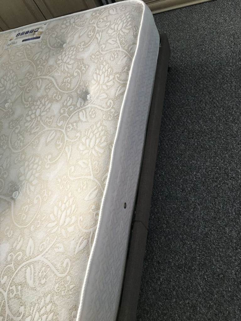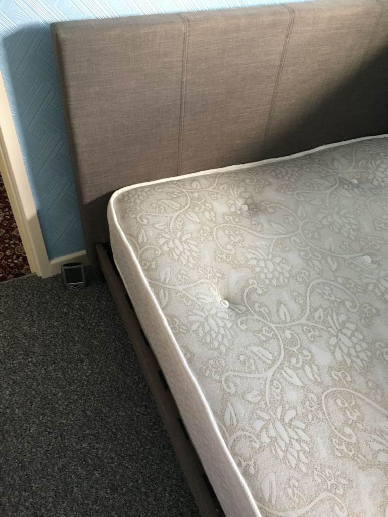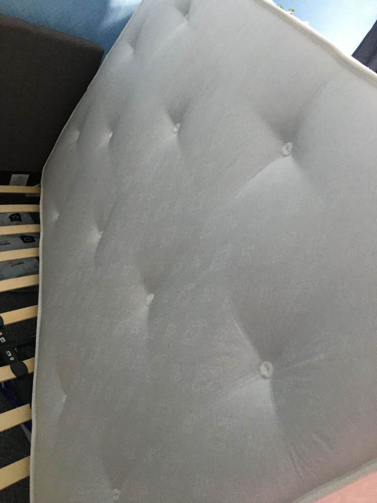 This product is a slatted small double bed base paired with an orthopedic memory foam mattress, just 6 months old from a clean non smoking home offering medium firmness for a comfortable night's sleep. The mattress is designed with double-sided memory foam, one side and the otherside orthopedic being 17cm deep providing the benefits of orthopedic and memory foam support. Perfect for a bedroom setting, this combination of bed base and mattress provides a supportive and comfortable sleeping experience for individuals looking for a medium-firm mattress option.the bed base is grey material all in perfect condition and mattress has allways had a mattress protector fitted when in use FREE AS ROOM NEEDED URGENTLY BUYER COLLECTS IN PERSON
