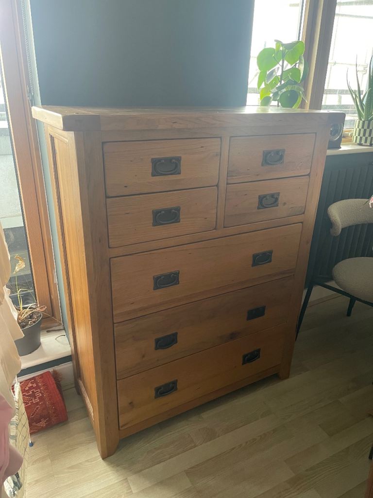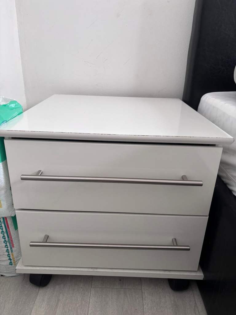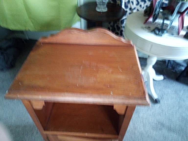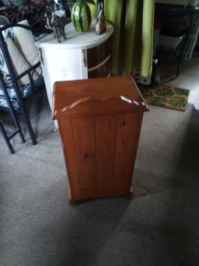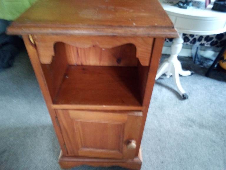 Solid pine bedside table has a small cupboard at the bottom and a shelf condition is very good, dimensions: height 27" x length 15" x width 11". £10