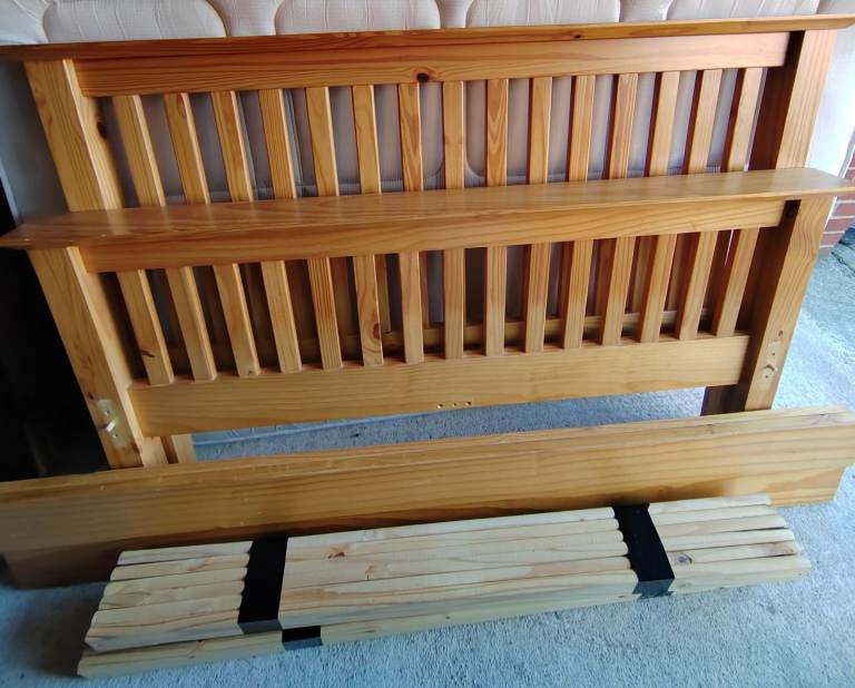 Solid pine double bed. Great condition. It's dismantled ready to go. Delivery locally available.