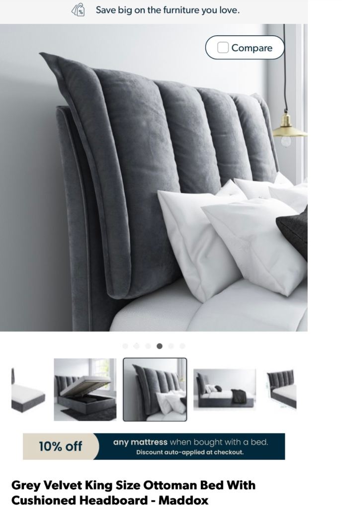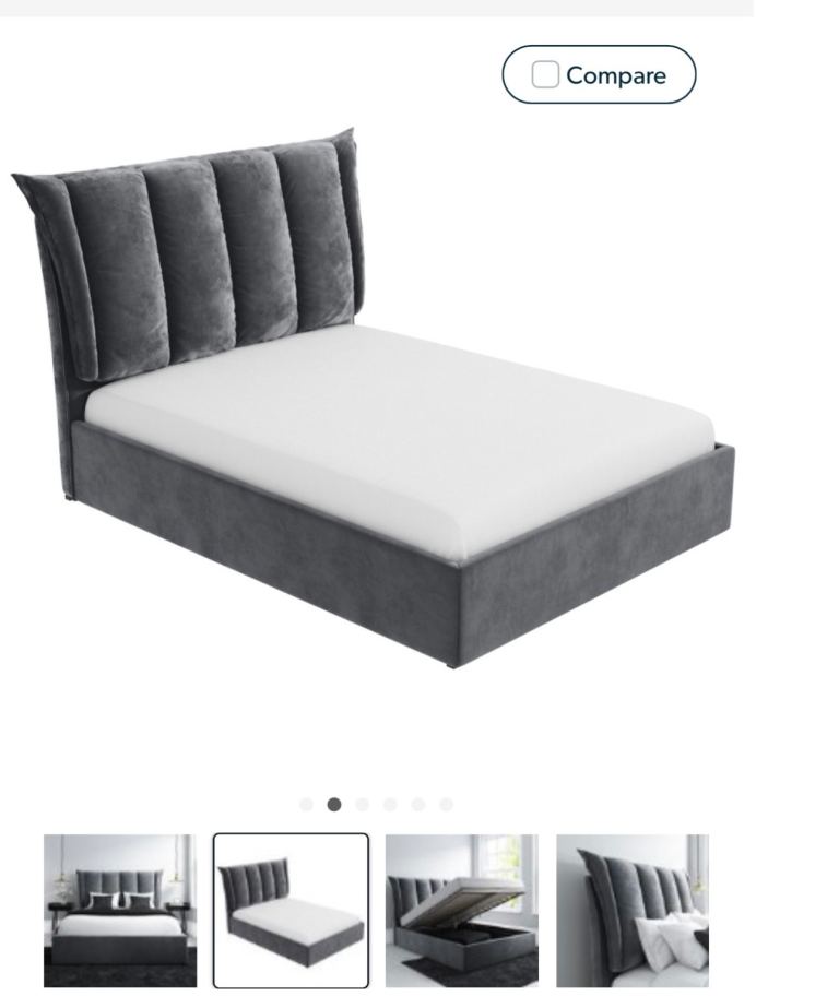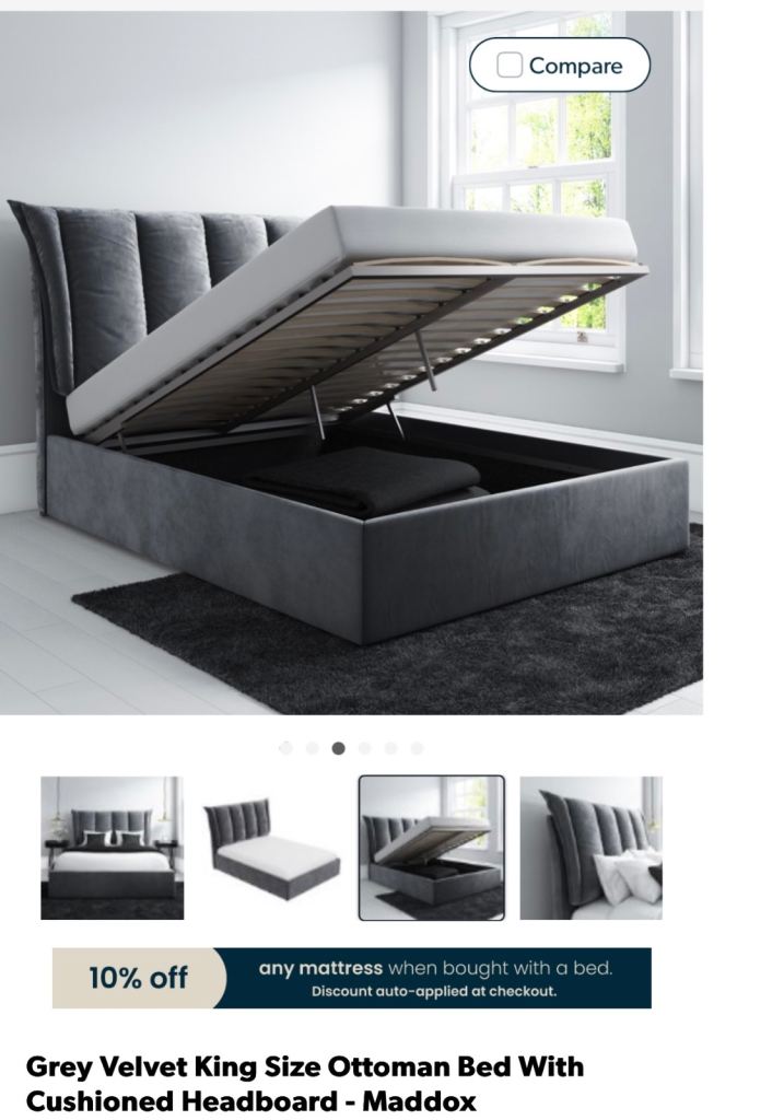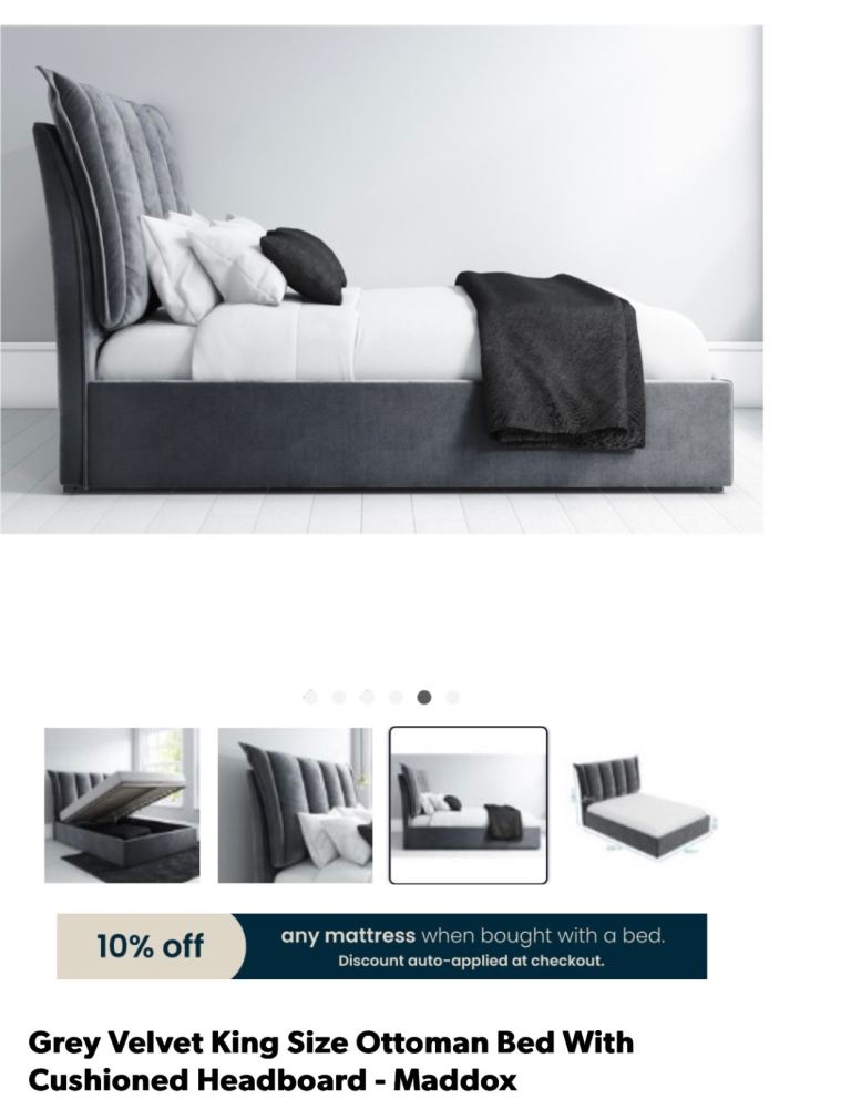 -Maddox king size ottoman bed in grey velvet