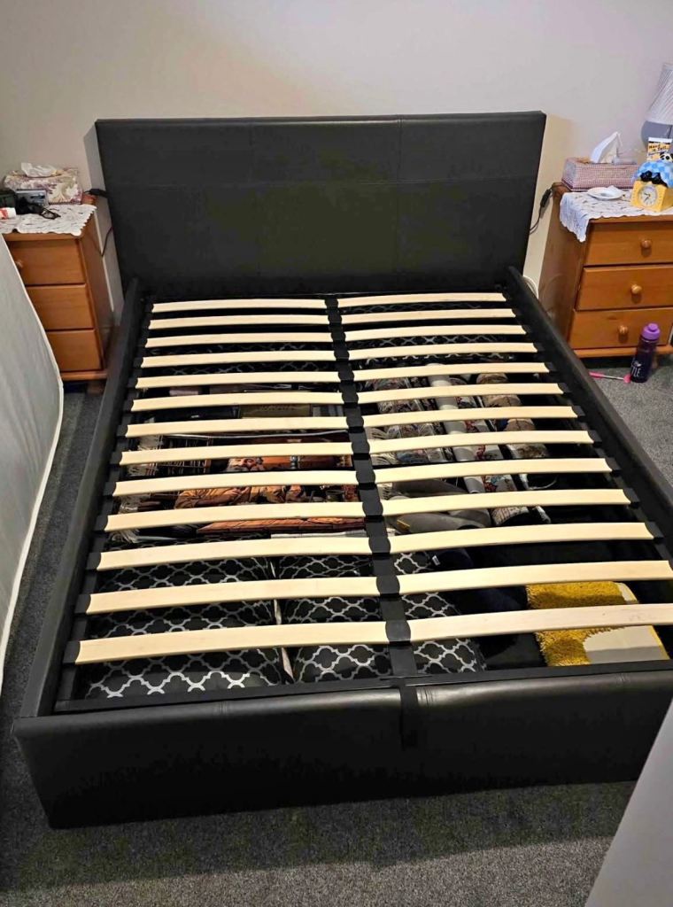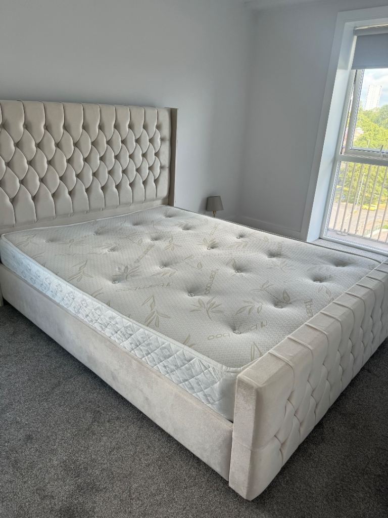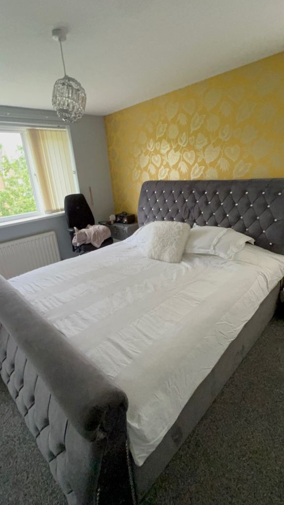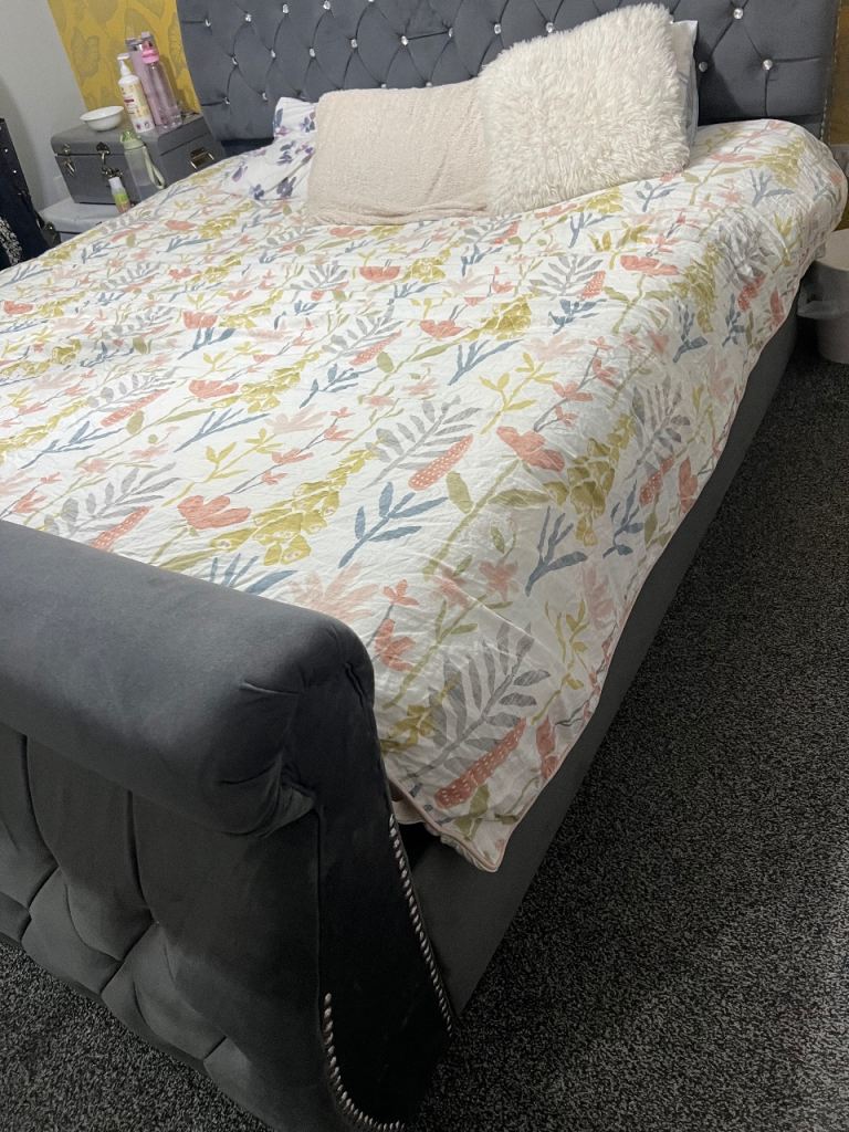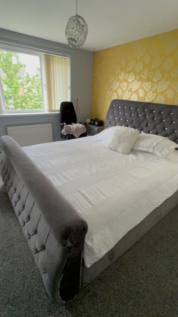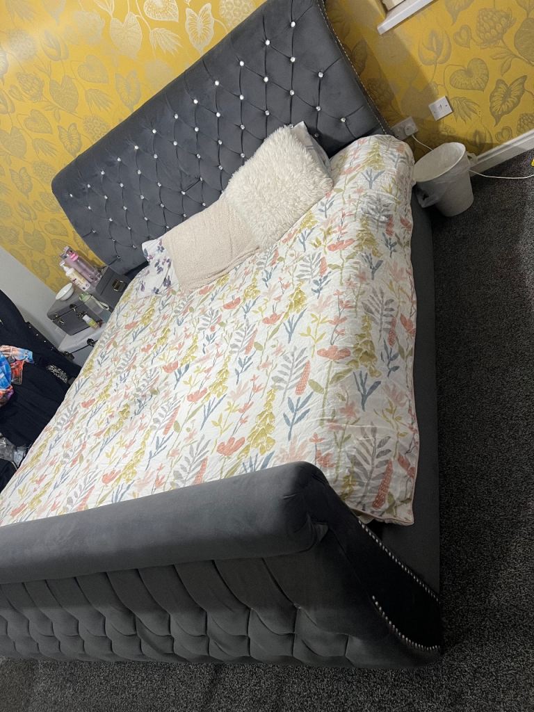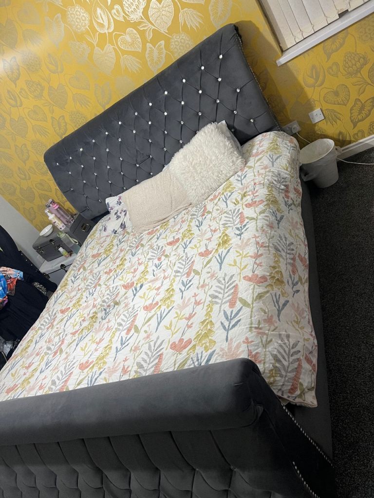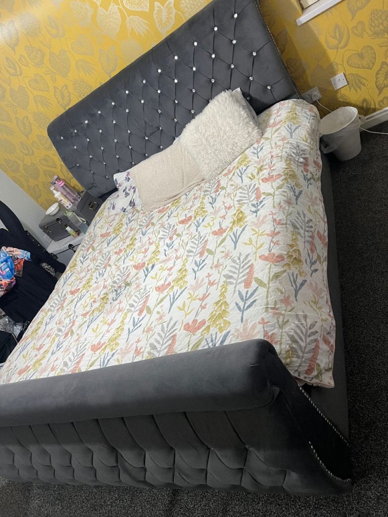 Posting for 3+ yearsSuper King Gas Lift Grey Velvet Ottoman Bed
