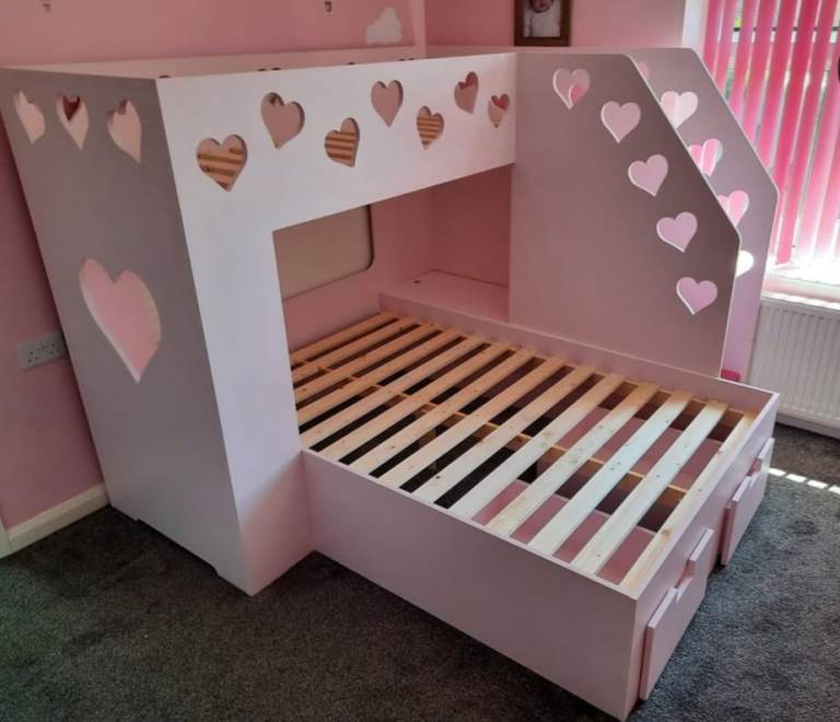 Triple bunk bed, small double bottom bunk, small single top bunk.