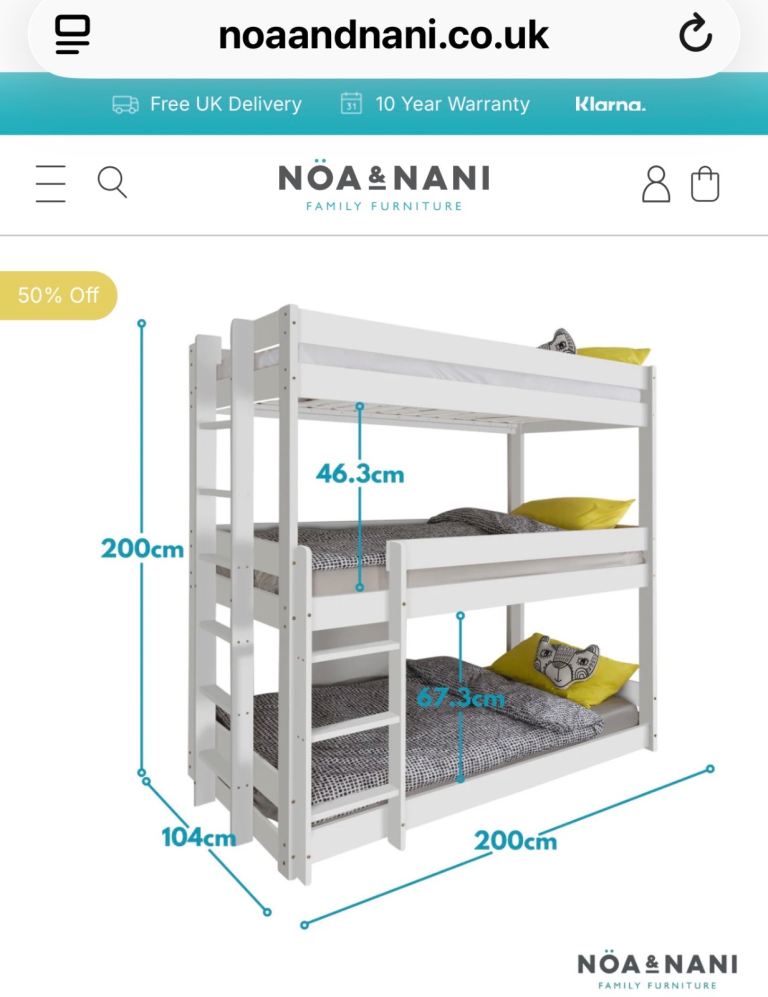 Noa and Nani currently out of stock. Crafted from solid pine, the triple bed is super sturdy and offers a safe and stylish space for children to slumber, whilst the bright white introduces warmth and style to any bedroom.
