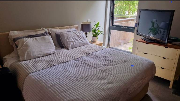 Posting for 5+ yearsVelvet nude/beige super king bed headboard