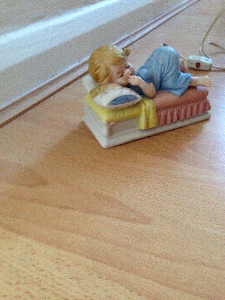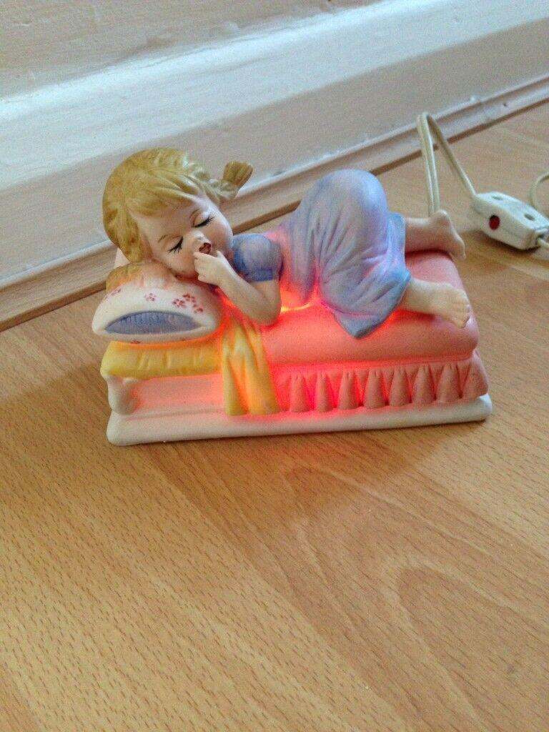Vintage porcelain 'sleeping baby' night light, from 1970s.