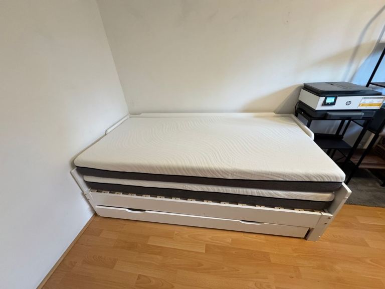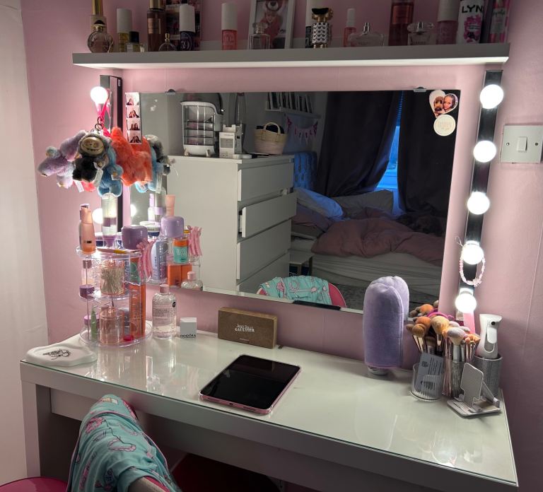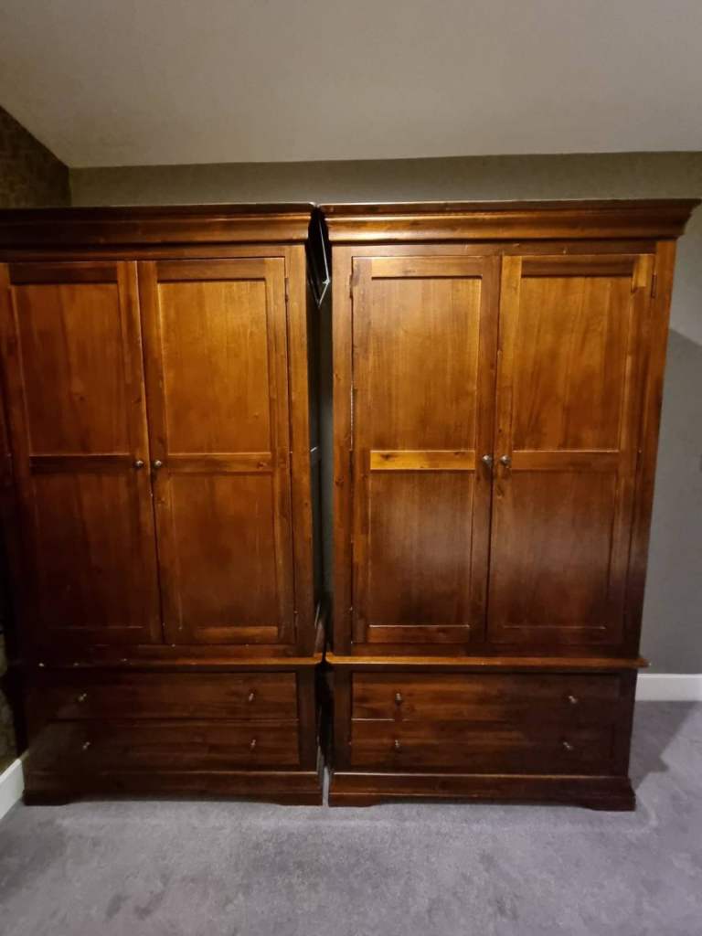 Modern white double wardrobe and matching Dressing table set with stool and vanity mirror