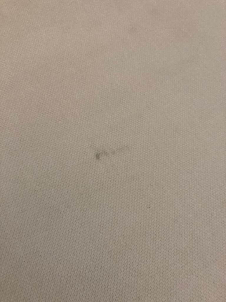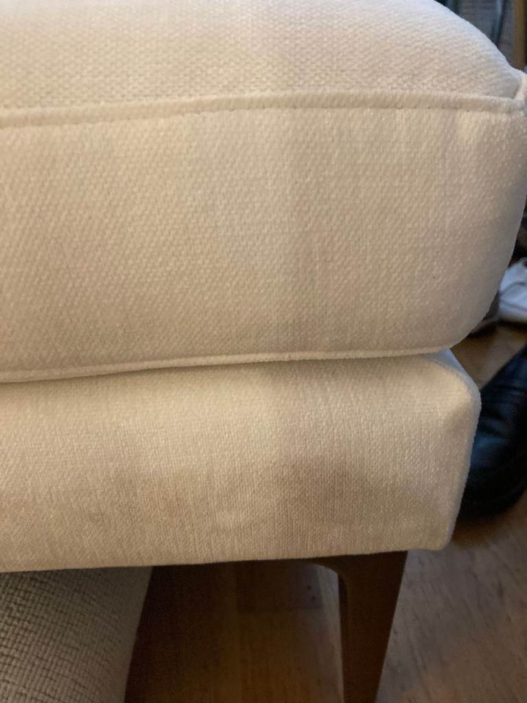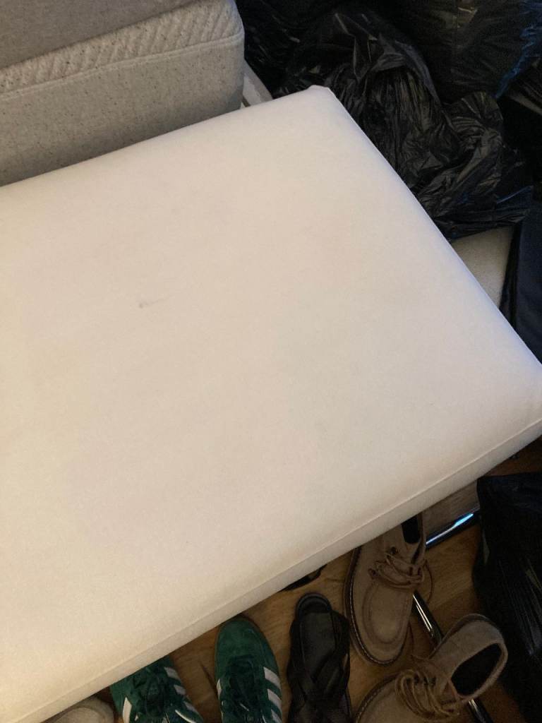 It got a bit dirty in the oversees move (see the photos of 1 mark across the side and 1 mark on the top). It should come out with a good steam clean. I've had the bench for 4 years and not often sat on it so it's in great condition. There was one other time in the past it had a few marks on it from me, and they all came out no issue with 1 steam cleaning.