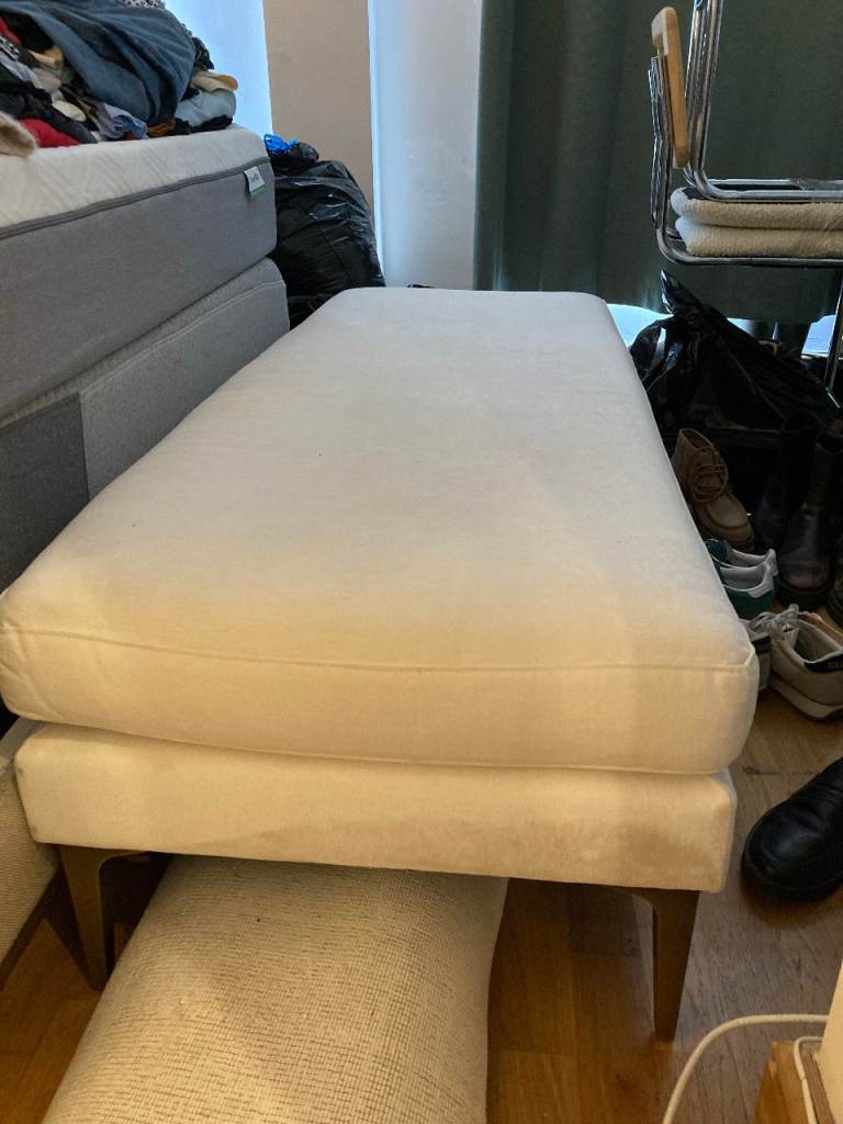 Andes Upholstered bench from West Elm - for sale for £799 new on West Elm website.