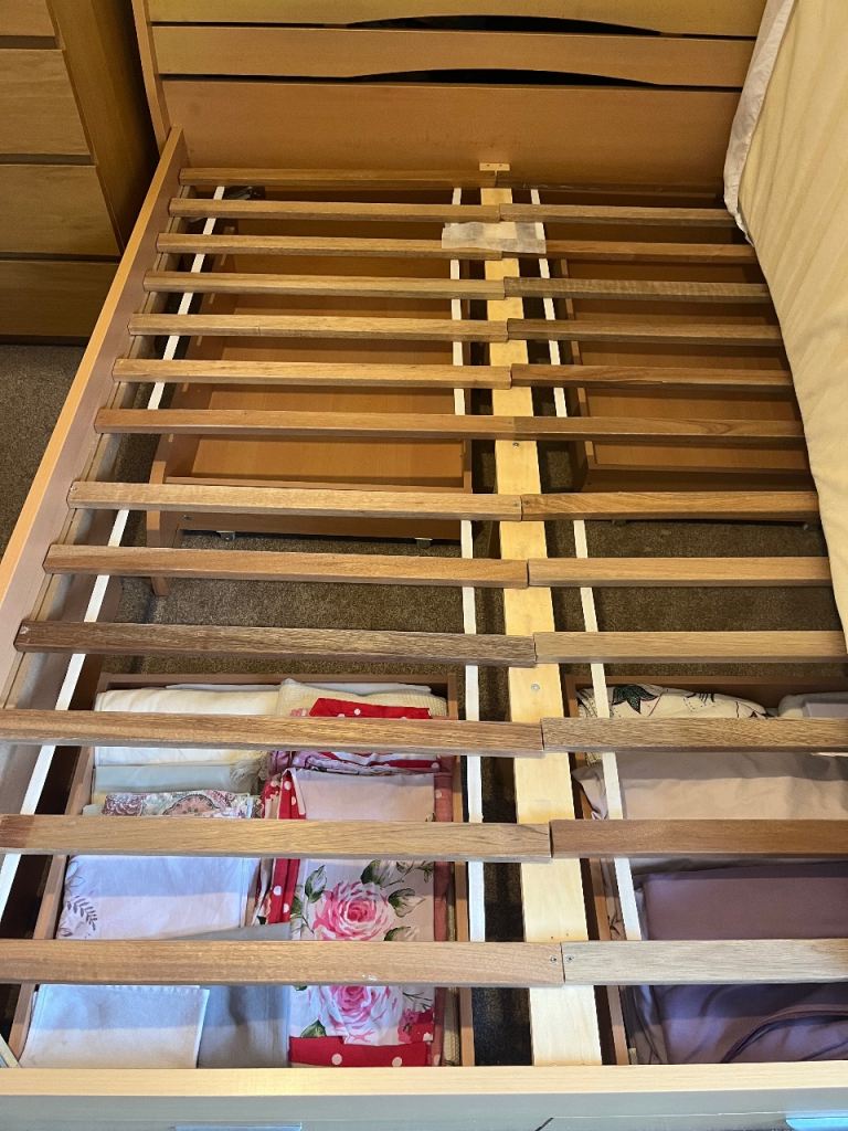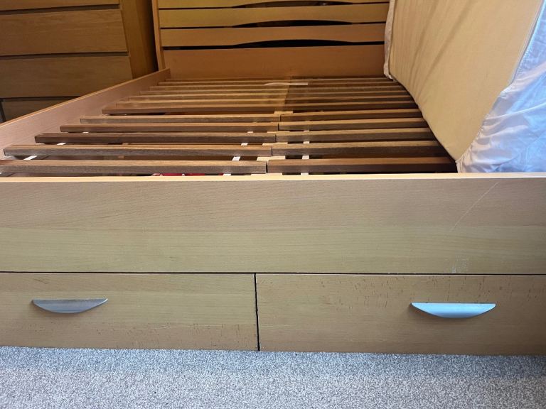 King size wooden bed frame only, 4 useful storage drawers. Quick sale as I’m in the process of moving home. We are a clean smoke and pet free home. Collection only.