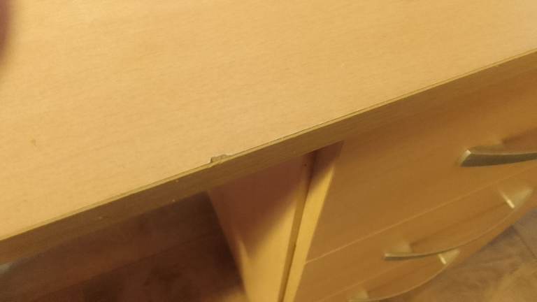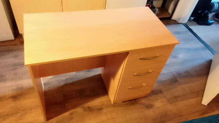 Wooden work desk for sale. It has 3 good sized storage drawers. Has a small nick in top part. Ideal as a study or hobby desk with ample storage. £30 ono.