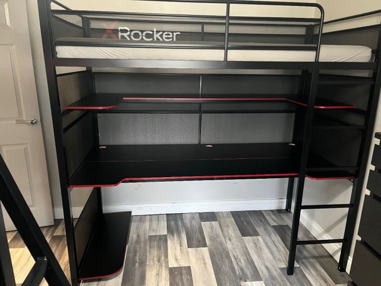 Posting for 10+ yearsX Rocker Battlebunk Gaming High Sleeper Bunk Bed with Shelf & Desk