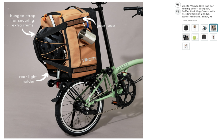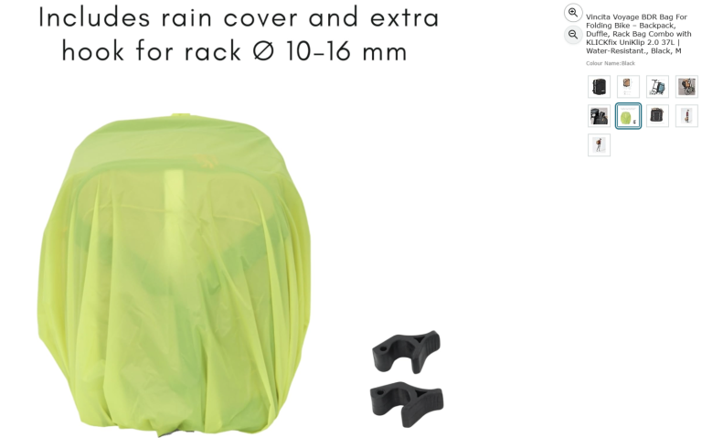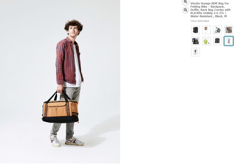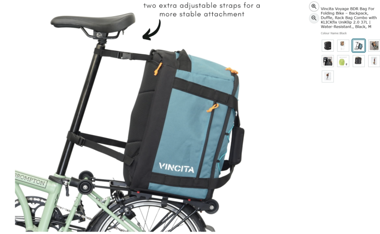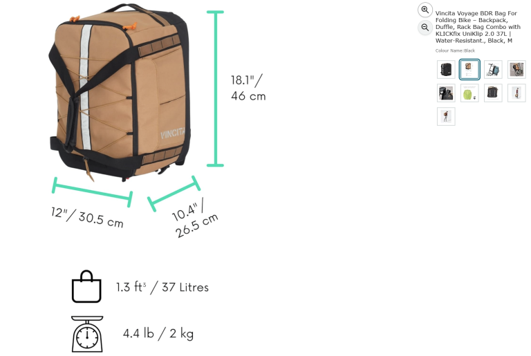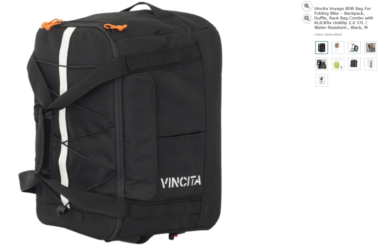 Vincita Voyage BDR Bag For Folding Bike – Backpack, Duffle, Rack Bag Combo with KLICKfix UniKlip 2.0 37L | Water-Resistant., Black, M