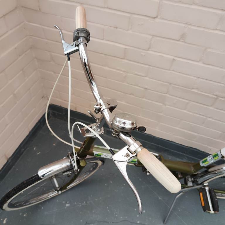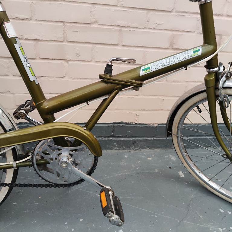 A tidy vintage Raleigh Stowaway folding bike — cleaned, serviced and ready to ride. A classic British design, perfect for city commuting or weekend rides.