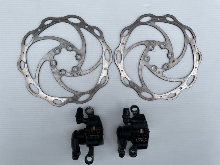2 X 700x42C Tyers, 2 X 700 New Tubes, 2 x Tektro Rotors, 1 x TRP New Rotor, 2 x Tektro Lyra Brake Calipers