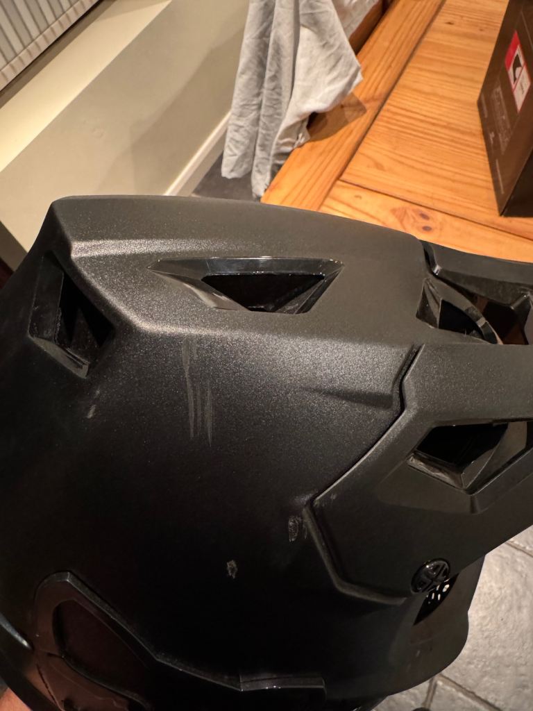 Fox rampage full face helmet, literally only worn it once, got a small couple of scuff marks as shown in the photo, doesn’t look that bad in person I’ll be honest, only happened because it’s got knocked out my hands getting ready to head up the trail, as you can see I paid £150 for it so I think £100 is a fair price as it’s priced because of the scuff. Or make a fair counter offer.
