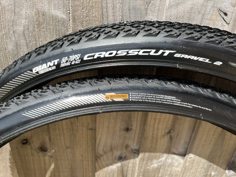 Giant Crosscut Gravel tyres 700 x 45 c. These tyres are as new A1 perfect condition. No marks damage wear/tear or any sign of use. As new condition. These tyres are not now needed as I have swapped over to road tyres on my bike and are now surplus. Only purchased on 17/07/24 with receipt costing £70 the pair. Want to sell as a pair £50 cash on collection only.