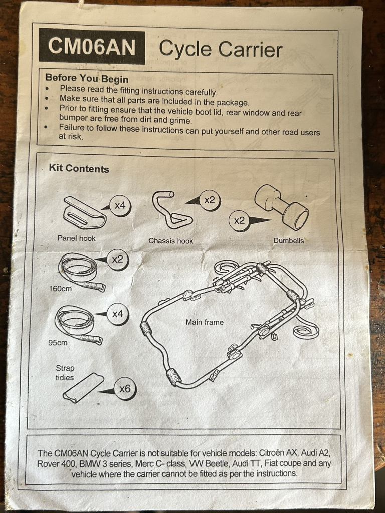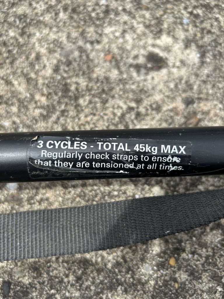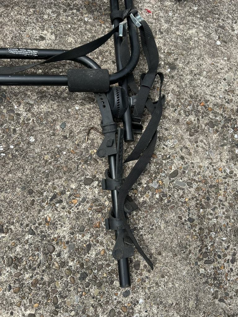 3 bike 45 kg carrier. As photos. It’s been little used. Time for a new home. Will clean up well with a little tlc. No safety strap.