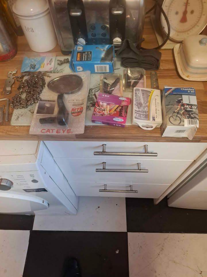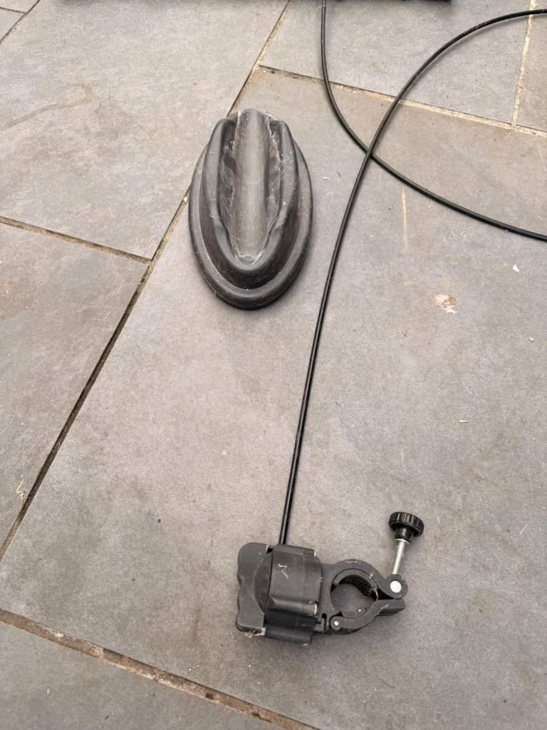 Pedal Pro bike trainer. Can be used with most types of bikes such as mountain bikes. Attached to rear wheel bolts. Slight wear and tear on cable, shown in pictures