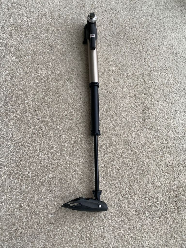 Avanti sport adjustable safety helmet and folding tyre pump with pressure valve. Pump folds neatly away to fit in back pack. Both in very good condition, both sold together.