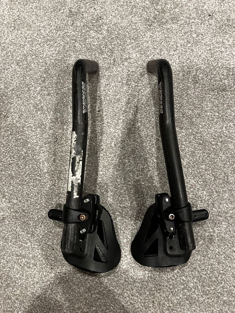 Used fairly heavily, extensions are a bit scuffed and base bar has a small dent (pictured)