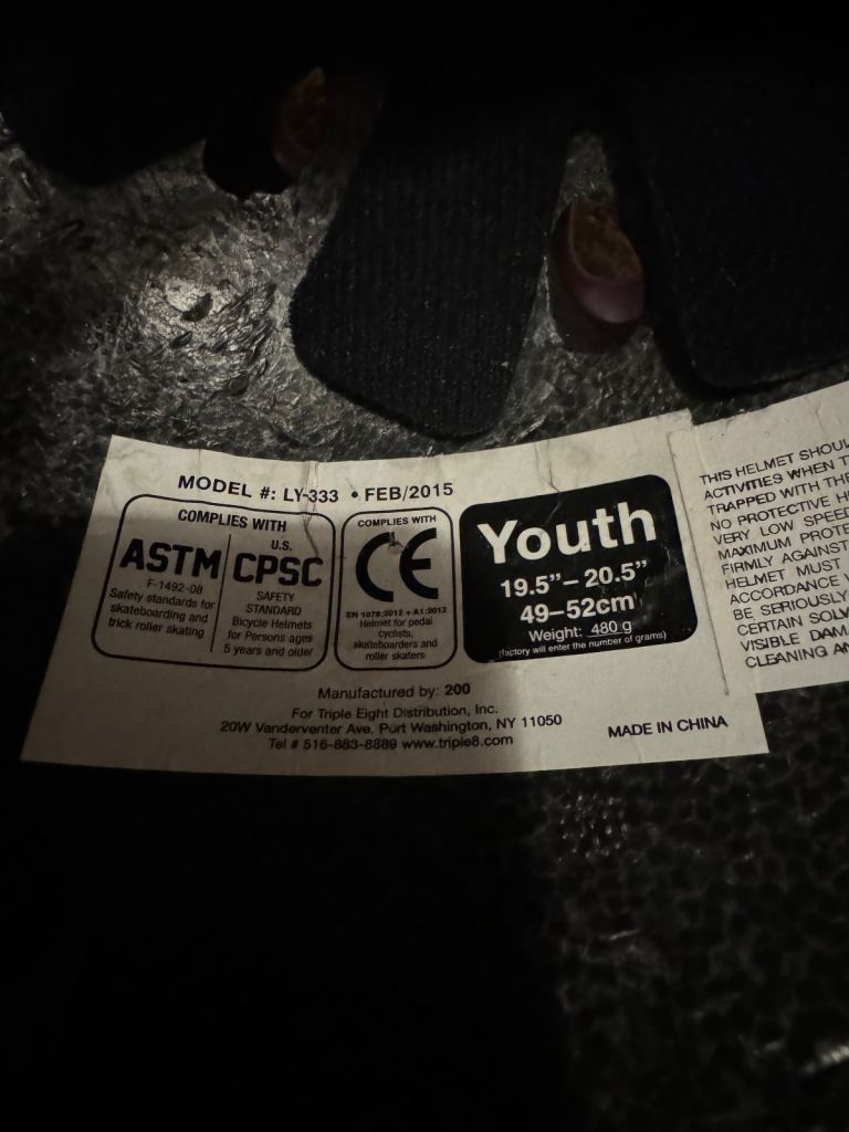 Triple 8 "Little Tricky" Junior Rubber Helmet 19.5”- 20.5” In very good condition collection or post thanks