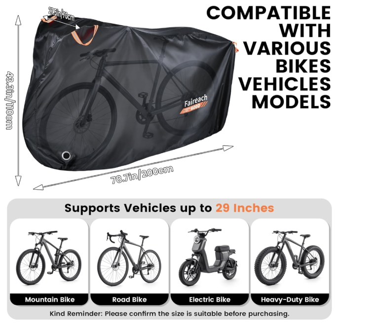600D Bike Cover Waterproof Outdoor, Extra-thick OXFORD Fabric Heavy Duty Bicycle Cover, Anti Dust Rain Snow UV Ebike Covers for Mountain Road Electric Bike, 200x110x70cm, - For 1 Bikes