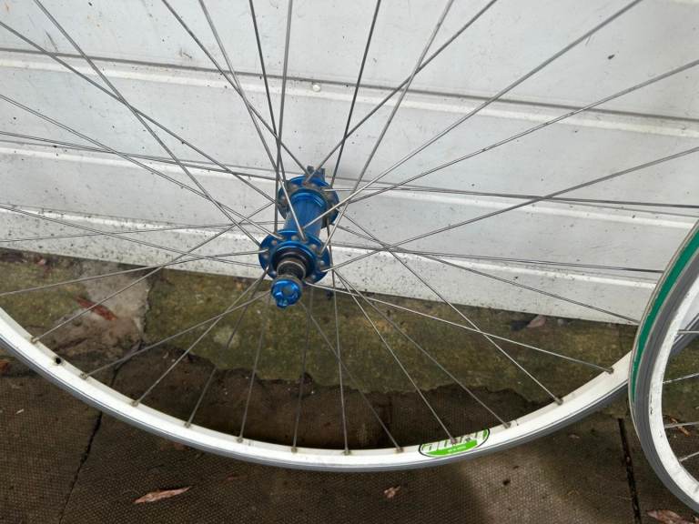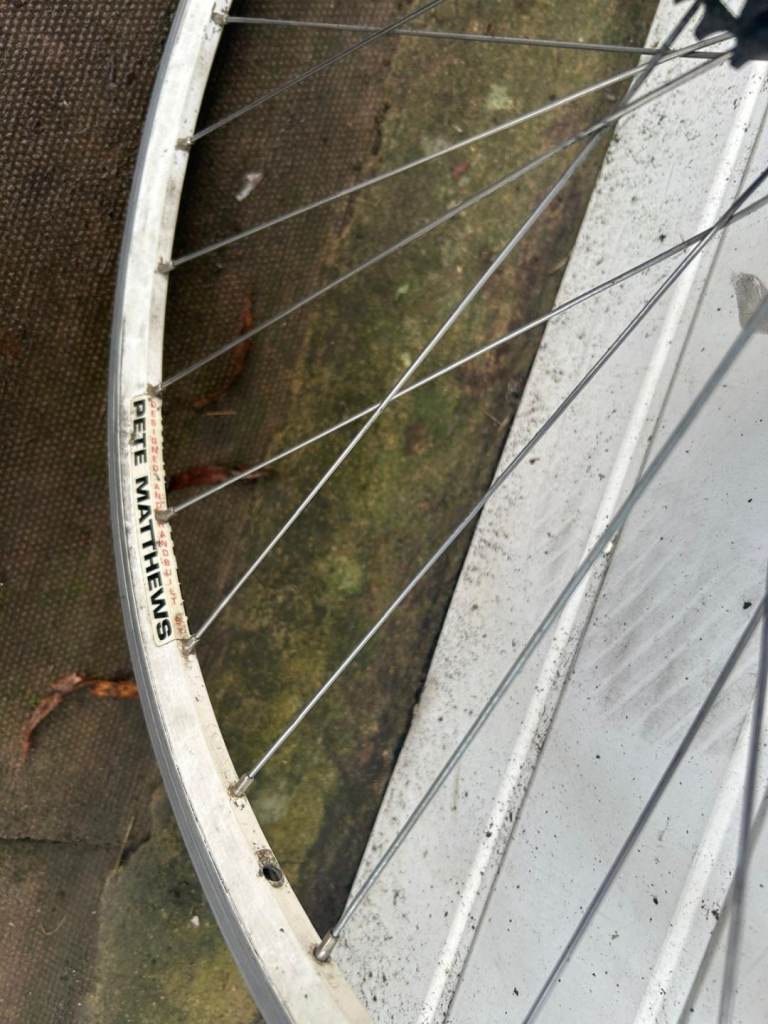 A pair of Pete Matthews wheelset. In very good condition and runs true. Comes with Hope hubs