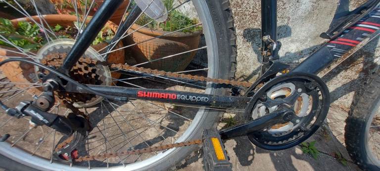 Been in a shed a while. Frame work and tires good. Unfortunately the chain is completely rusty. Would need taking off and cleaning properly. If up for that job you can have bike for £35 + the safety helmet.