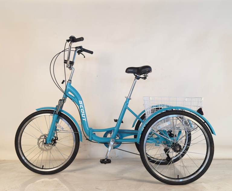 The 24″ folding adults tricycle by Scout, is designed with comfort and ease in mind and are a perfect way to cycle for all types of riders, whether you suffer from mobility issues and require a disabled adults tricycle are a novice rider or a competent cyclist who just wants the ease of a three wheeled bike and room for their extra shopping.