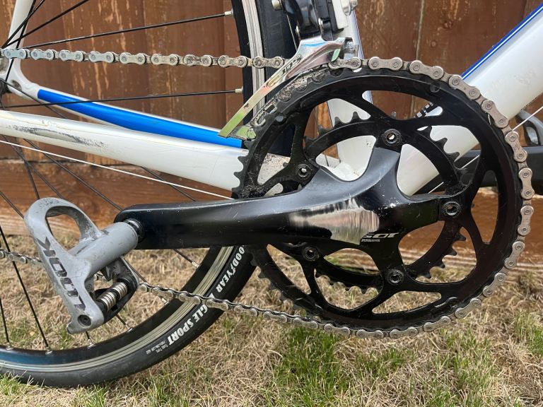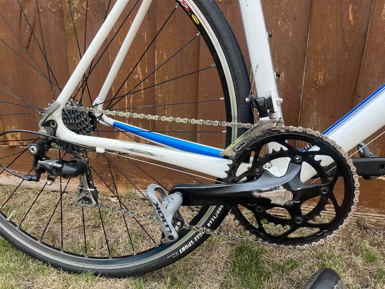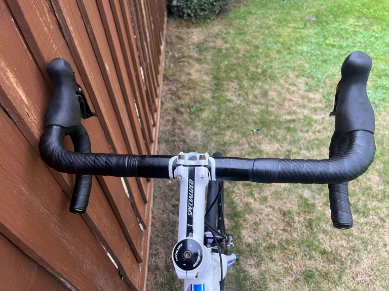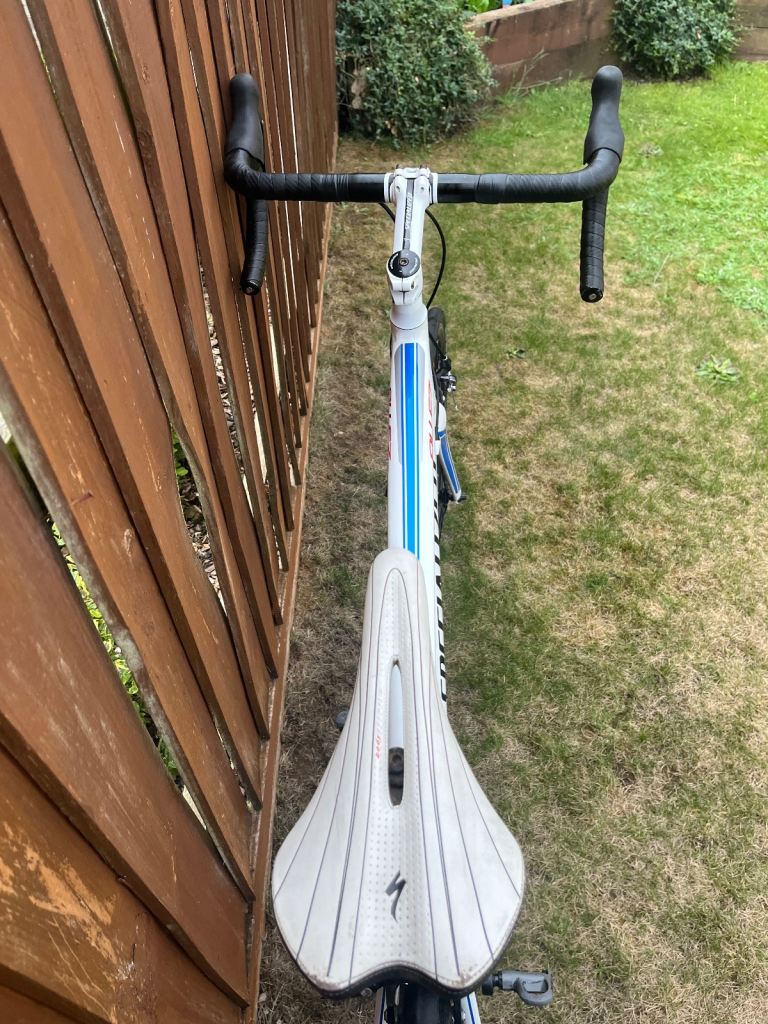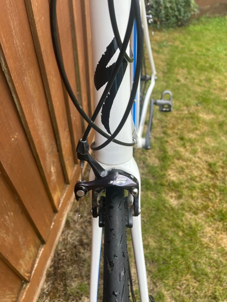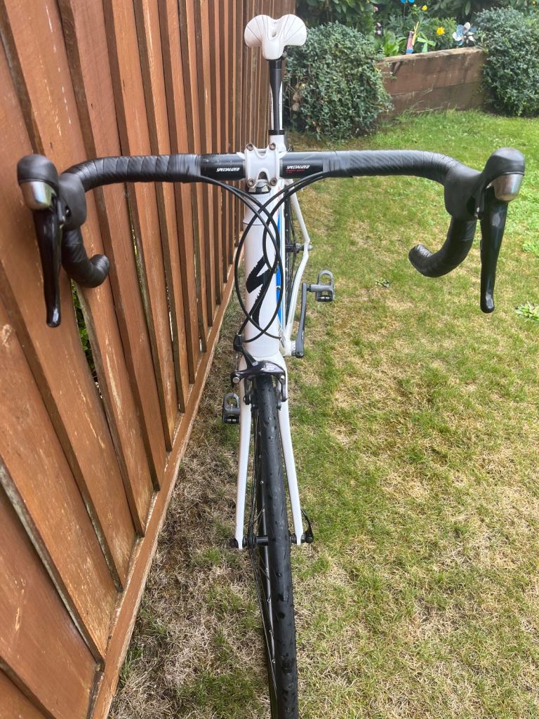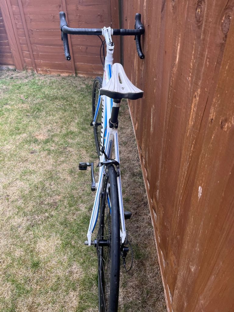 Posting for 12+ yearsAllez Comp Compact 105 Roadbike - 58 Frame (XL) – White/Navy Blue/Silver – Look Keo Classic Pedals