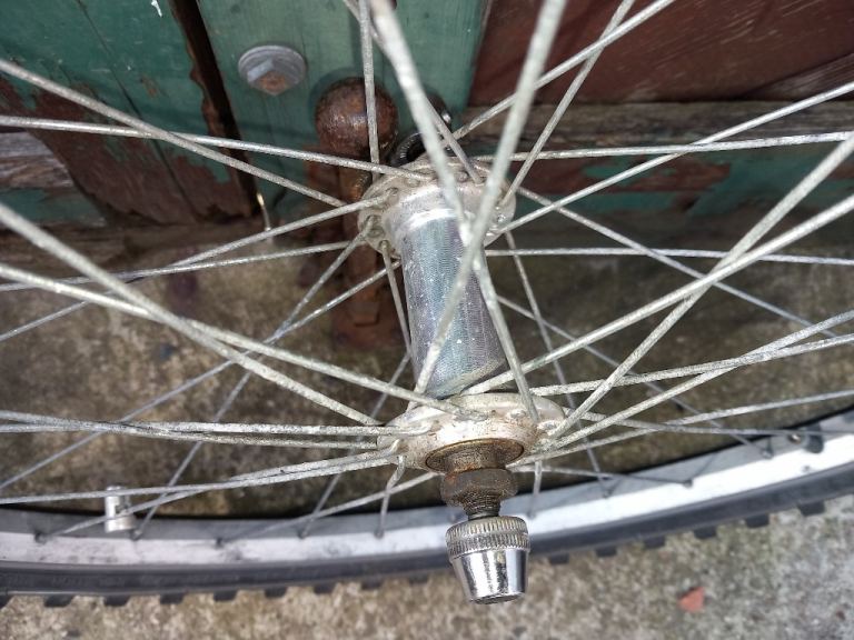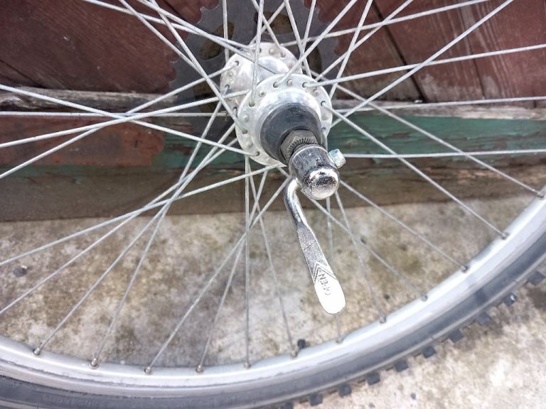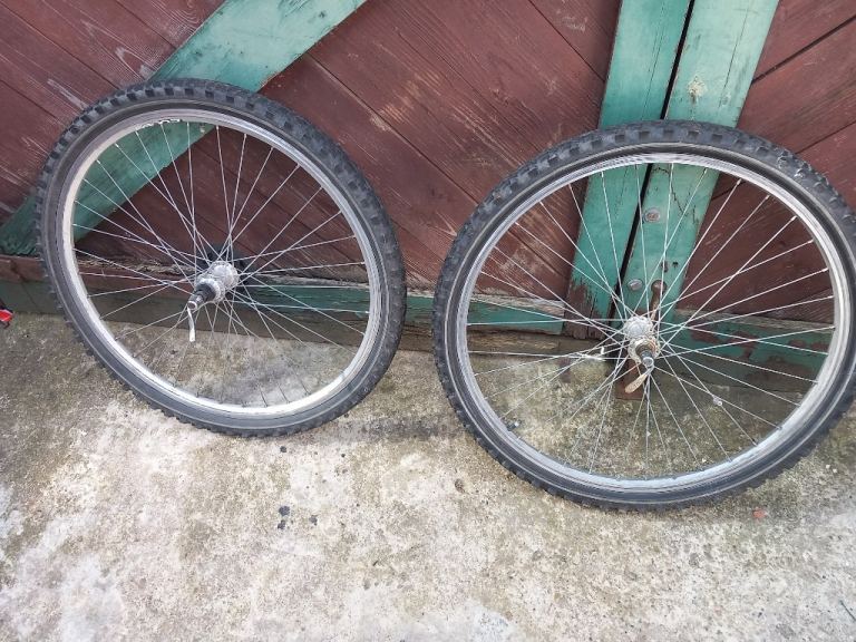 bicycle wheels 2 of, front and rear, aluminum rim quick release good tryes, both size 26 X 1.95 fully inflated.