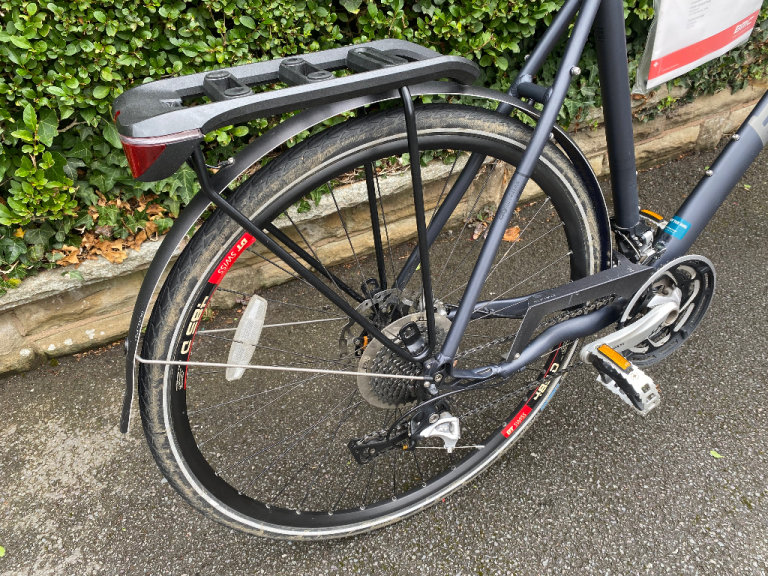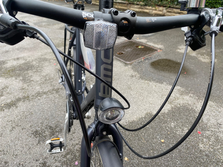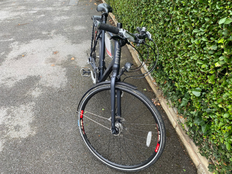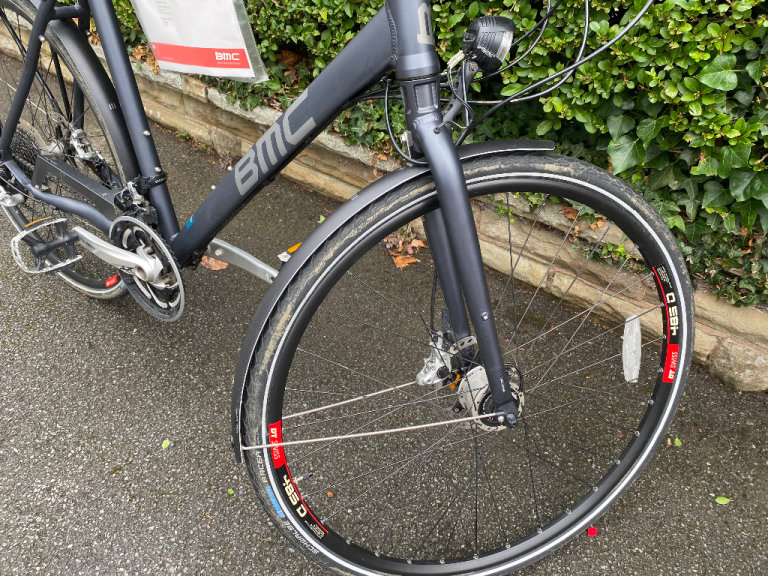 BMC City Streamer CS01 XT hybrid bike. Only one very careful owner from new in excellent conditiion throughout having been internally stored and having been very little used. It’s a traditional style frame, with no suspension and a rear luggage carrier. It has a Shimano XT 30 gear shift which is thumb operated. The disc brakes are hydralic. Lights are powered by a front hub dynamo. Rear luggage carrier rack with built in rear LED light. Side stand. A very comfortable, practical and quality built bike. Cost